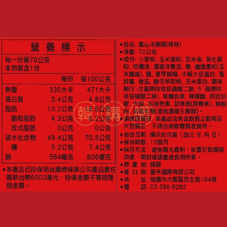 農心洋蔥圈(辣味)70g【韓購網】農心洋蔥圈(辣味)70g【韓購網】Biscuits, Cookies & Wafers《韓購網》KOREA SHOP韓國專賣店