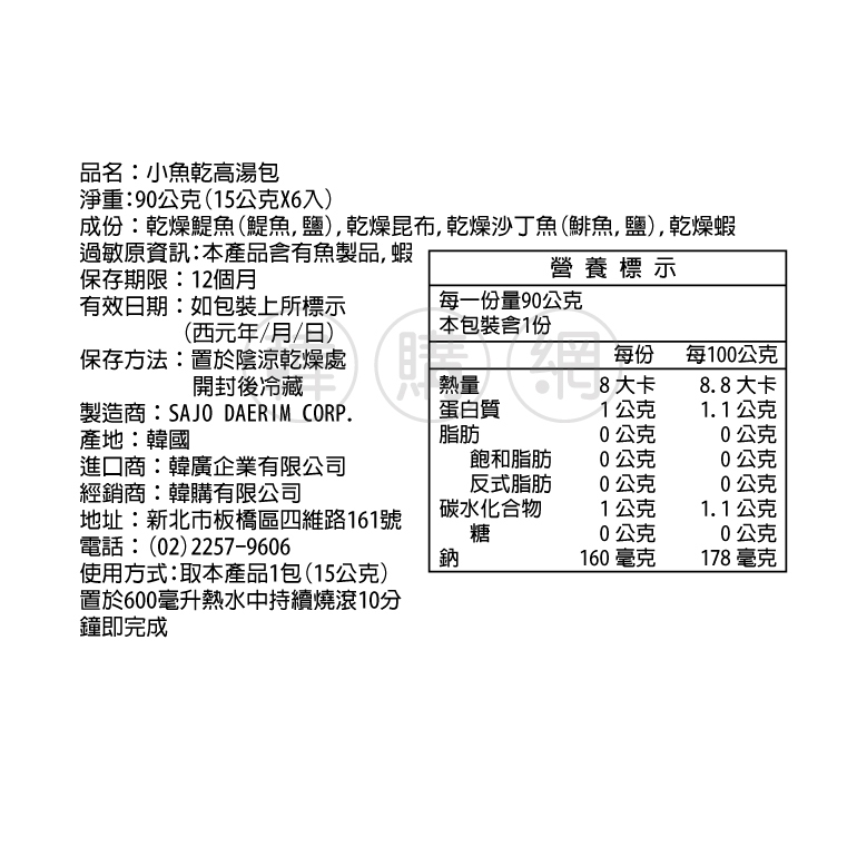 韓國SAJO 小魚乾高湯包90g(15gX6入)(2026.01.19有效)【韓購網】韓國SAJO 小魚乾高湯包90g(15gX6入)(2026.01.19有效)【韓購網】Stock, Gravy & Instant Soup《韓購網》KOREA SHOP韓國專賣店