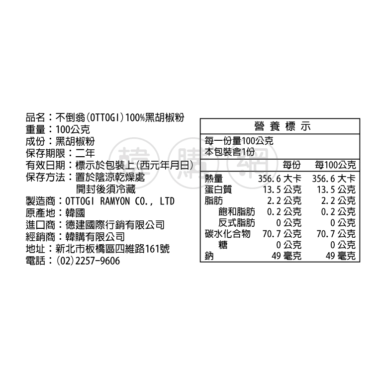韓國OTTOGI不倒翁 黑胡椒粉100g【韓購網】BLACK PEPPER POWDER韓國OTTOGI不倒翁 黑胡椒粉100g【韓購網】BLACK PEPPER POWDERSeasonings & Condiments《韓購網》KOREA SHOP韓國專賣店