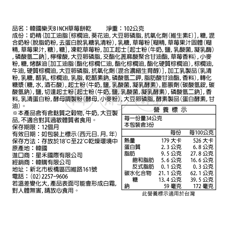韓國樂天BINCH 草莓餅乾102g【韓購網】