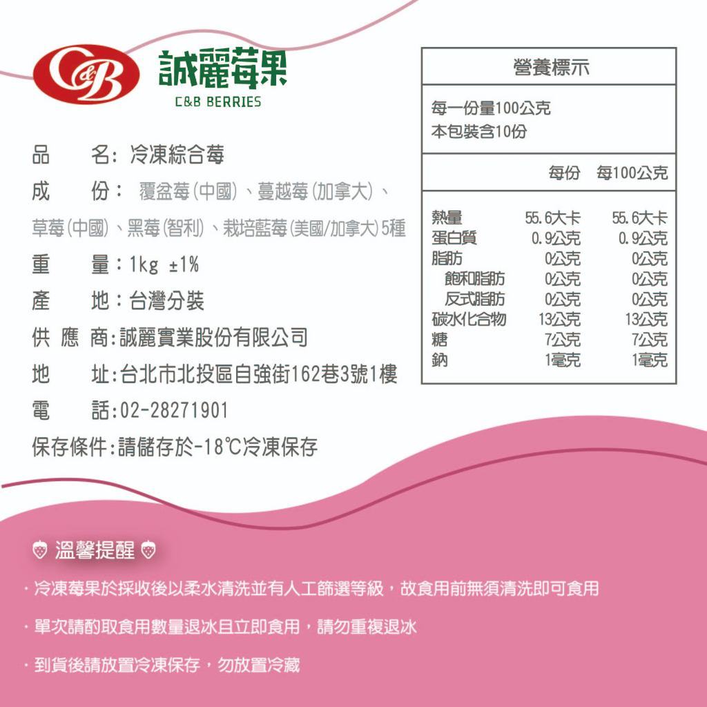 冷凍超取799免運【誠麗莓果】IQF急速冷凍綜合莓果 (蔓越莓、覆盆莓、草莓、黑莓、栽培藍莓) 5MIX BERRY提醒用勿下單超取限重9公斤超過請選擇宅配|1公斤|500克Fruits【誠麗莓果】