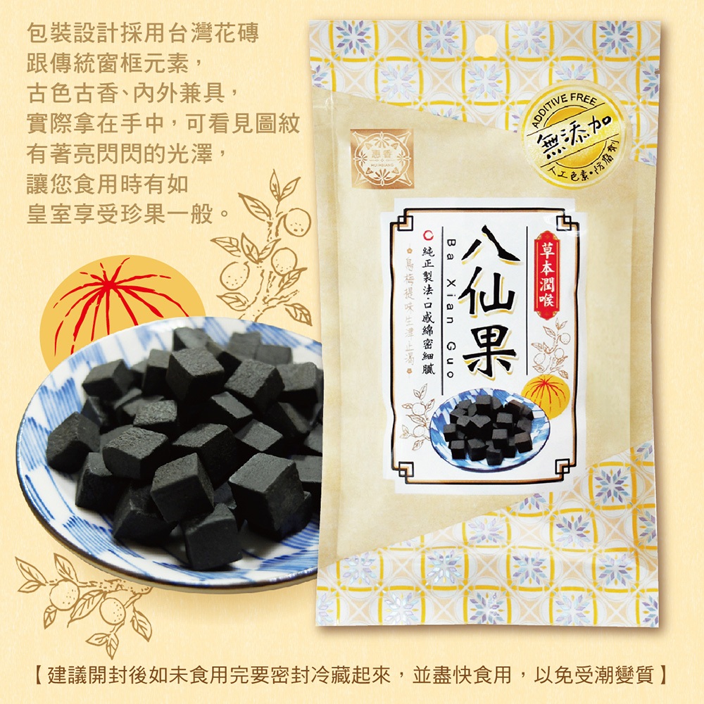 【惠香】八仙果(烏梅味) 90g/包 烏梅八仙果 蜜餞 喉糖 潤喉糖 老陳皮 羅漢果 切片八仙果 傳統零食 漢方草本【惠香】八仙果(烏梅味) 90g/包 烏梅八仙果 蜜餞 喉糖 潤喉糖 老陳皮 羅漢果 切片八仙果 傳統零食 漢方草本Dried Snacks【惠香食品】