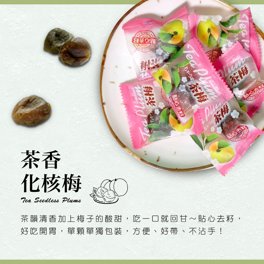 【日日好農】茶香化核梅(去籽) 蜜餞 甘宋梅 台灣蜜餞 橄欖 無仔橄欖密餞 化應子 脆梅 橄欖 化核梅 甘甜梅