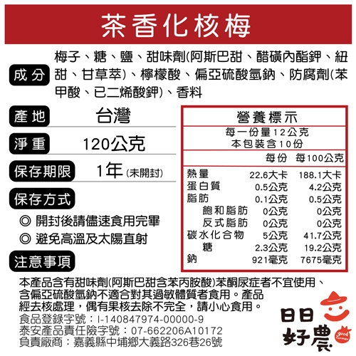 【日日好農】茶香化核梅(去籽) 蜜餞 甘宋梅 台灣蜜餞 橄欖 無仔橄欖密餞 化應子 脆梅 橄欖 化核梅 甘甜梅重量120公克Dried Snacks✦日日好農✦ goodfarmer