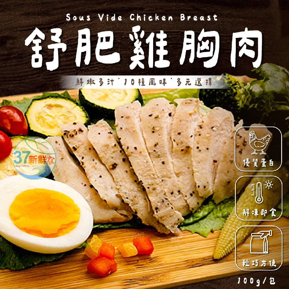【37鮮食購】舒肥雞胸肉(100g±10%/包) 超取限50片/單台式香蔥|經典原味|匈牙利紅椒|泰式椒麻|日式柚香|日式椒鹽|番茄羅勒|義式香草|紐奧良|新疆孜然Cooked Food37鮮食購