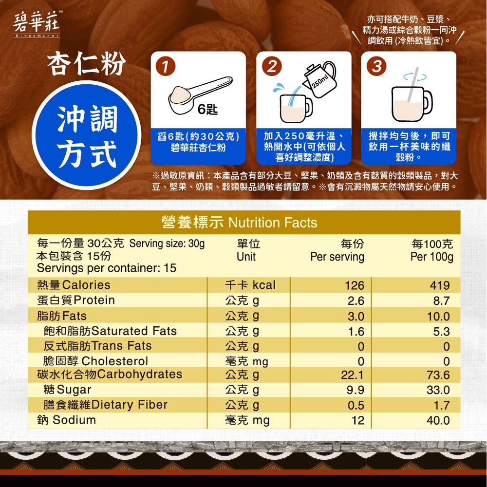 碧華莊 杏仁粉(買6送6/共12罐)碧華莊 杏仁粉(買6送6/共12罐)Powdered Drink Mixes【官方直營】J Mall傑登生研|科學營養・保健首選