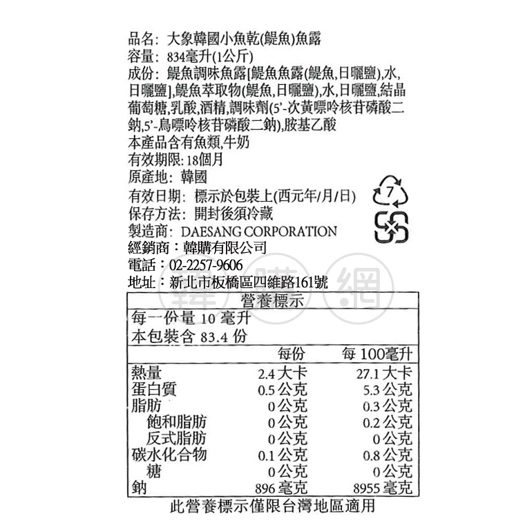 韓國DAESANG大象小魚乾魚露1kg(鯷魚露)【韓購網】韓國DAESANG大象小魚乾魚露1kg(鯷魚露)【韓購網】Seasonings & Condiments《韓購網》KOREA SHOP韓國專賣店