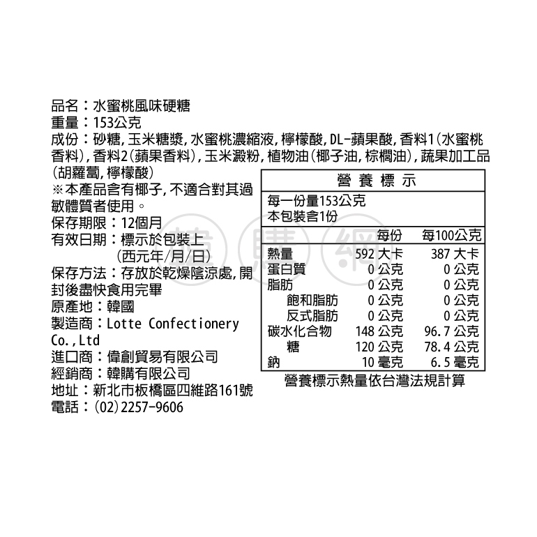 韓國LOTTE樂天 水蜜桃風味硬糖153g【韓購網】韓國LOTTE樂天 水蜜桃風味硬糖153g【韓購網】Sweets & Candy《韓購網》KOREA SHOP韓國專賣店