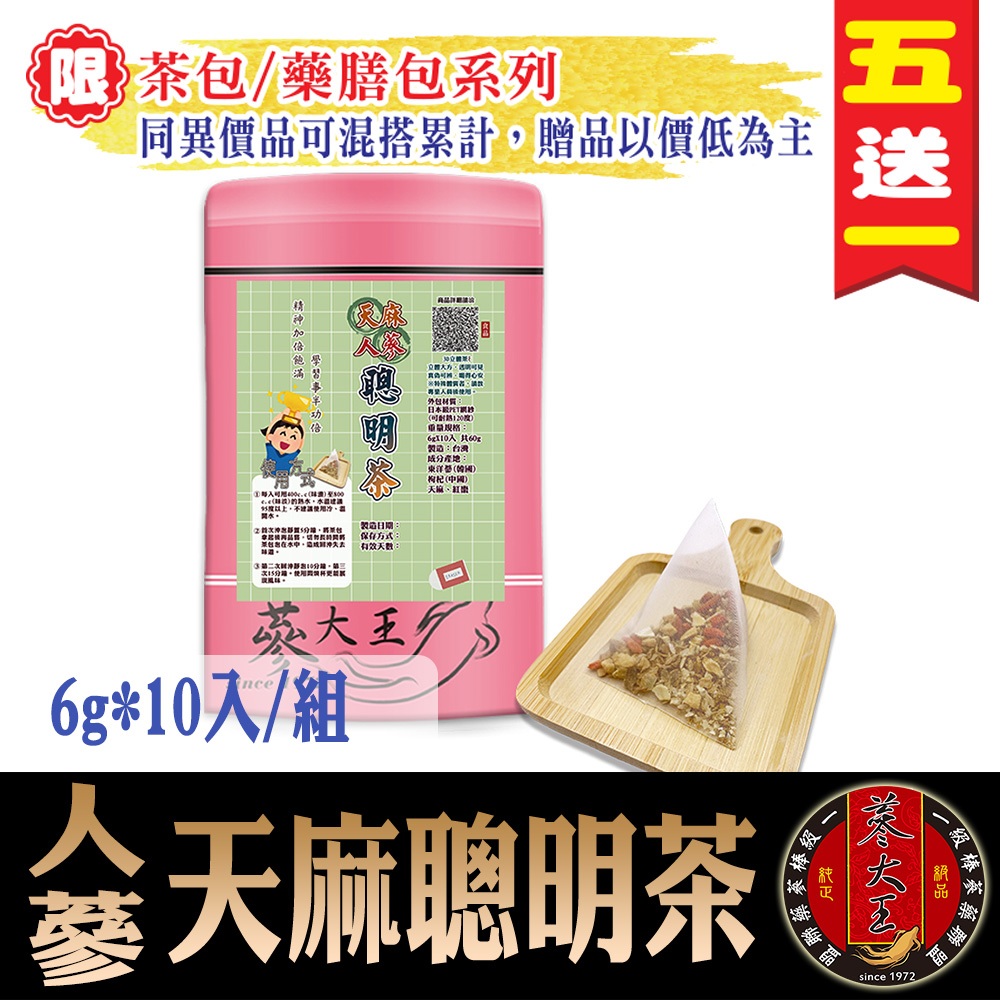 【蔘大王】天麻人蔘聰明茶►6gX10入/組❗買5送1❗學生上班族▪補氣調養▪漢方養生茶飲▪沖泡茶包❗特加東洋蔘【蔘大王】天麻人蔘聰明茶►6gX10入/組❗買5送1❗學生上班族▪補氣調養▪漢方養生茶飲▪沖泡茶包❗特加東洋蔘Traditional & Herbal Drinks【蔘大王】鮮人蔘藥膳食材