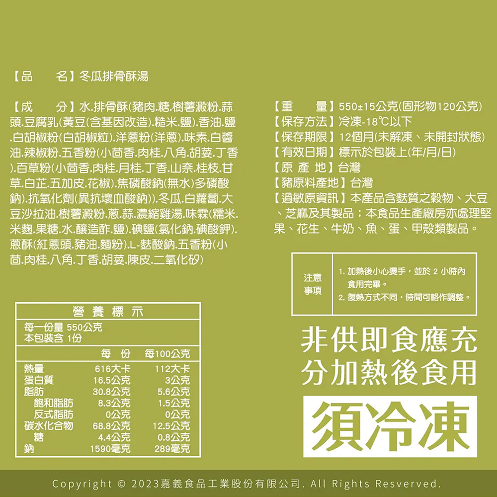 【呷七碗】冬瓜排骨酥湯(550g)【呷七碗】冬瓜排骨酥湯(550g)Cooked Food40年老店呷七碗 官方旗艦店