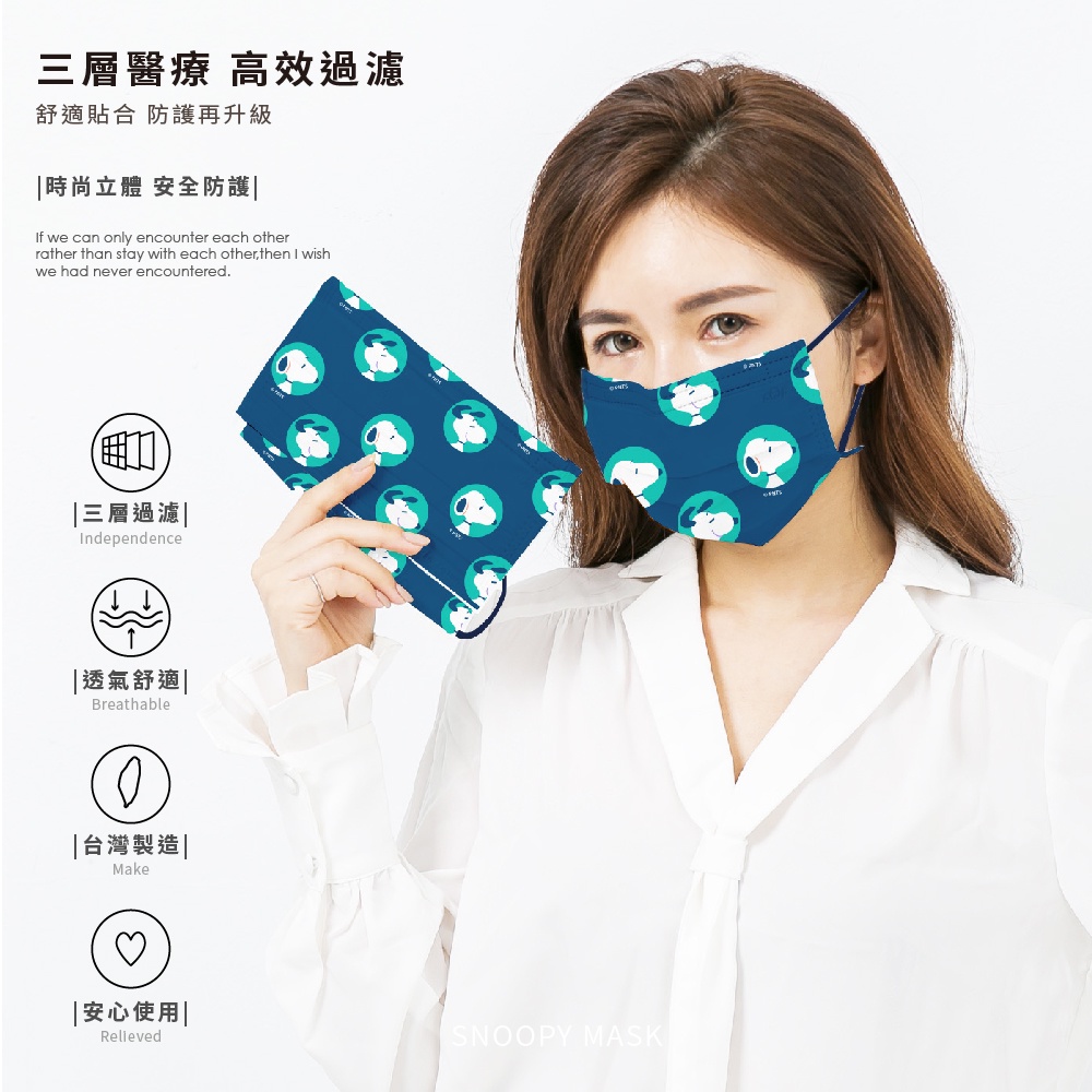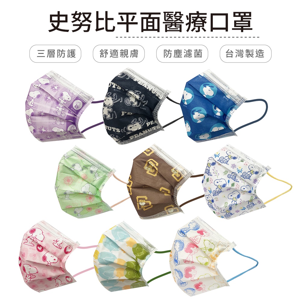 • 史努比 Snoopy 平面醫療口罩 醫用口罩 台灣製造 成人/兒童 (10入/盒)【5ip8】HW0027