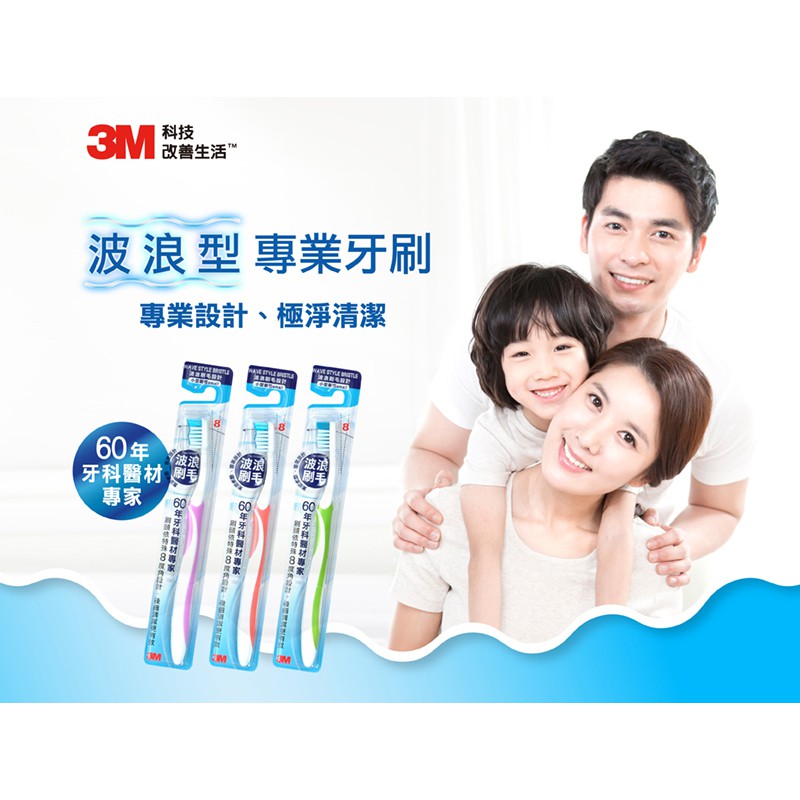 • 3M 8度角潔效抗菌波浪型牙刷10支包(顏色隨機)+送防水束口袋