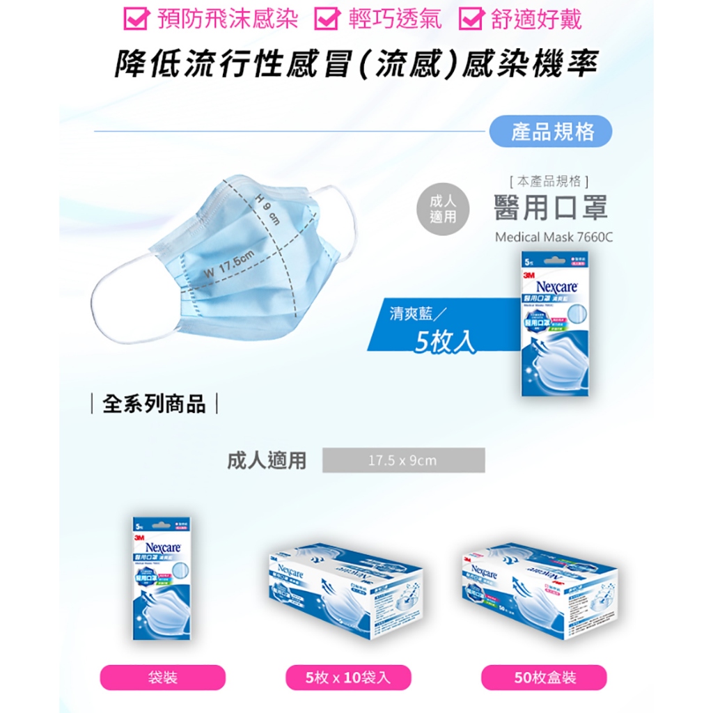 3M Nexcare 7660C 醫用口罩-盒裝口罩 2盒組(5片隨身包x20包共100片)粉藍-成人適用(隨身包款)|粉藍-兒童適用(隨身包款)Medical Gloves & Masks3M 授權官方旗艦館