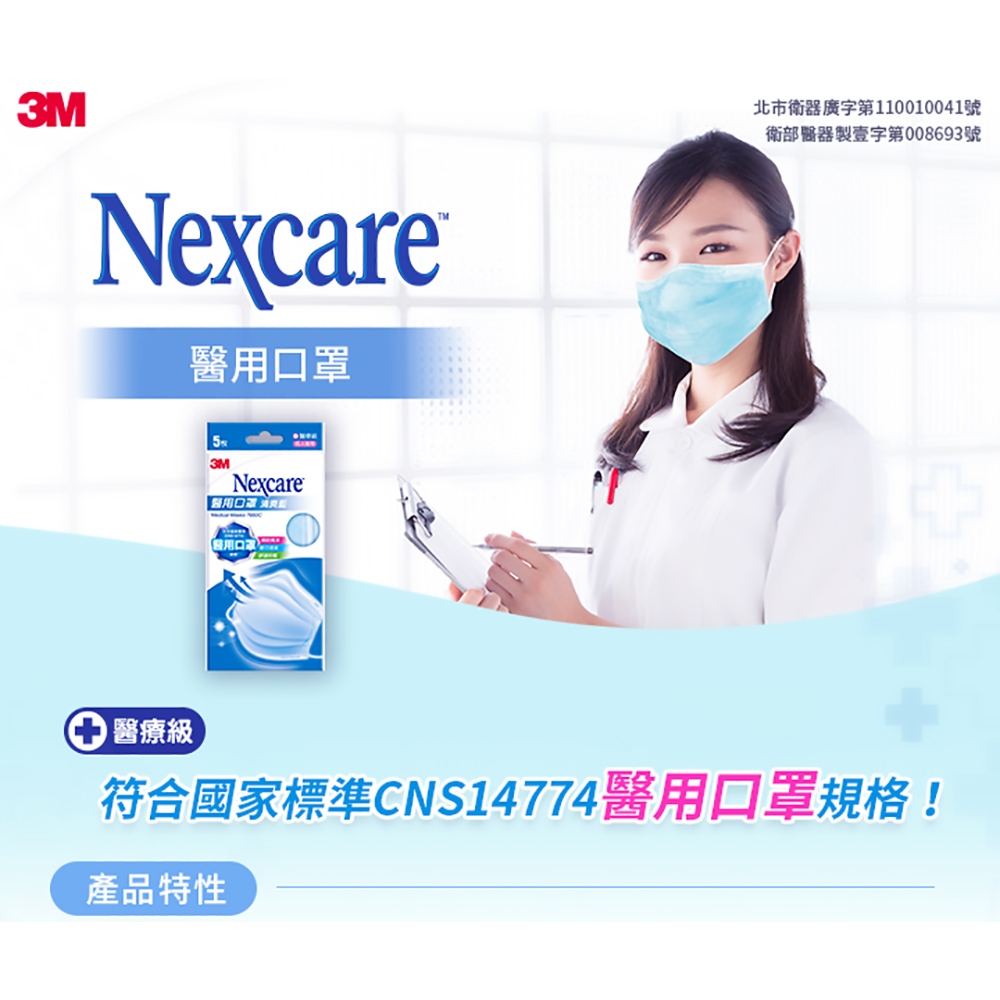 3M Nexcare 7660C 醫用口罩-盒裝口罩 2盒組(5片隨身包x20包共100片)