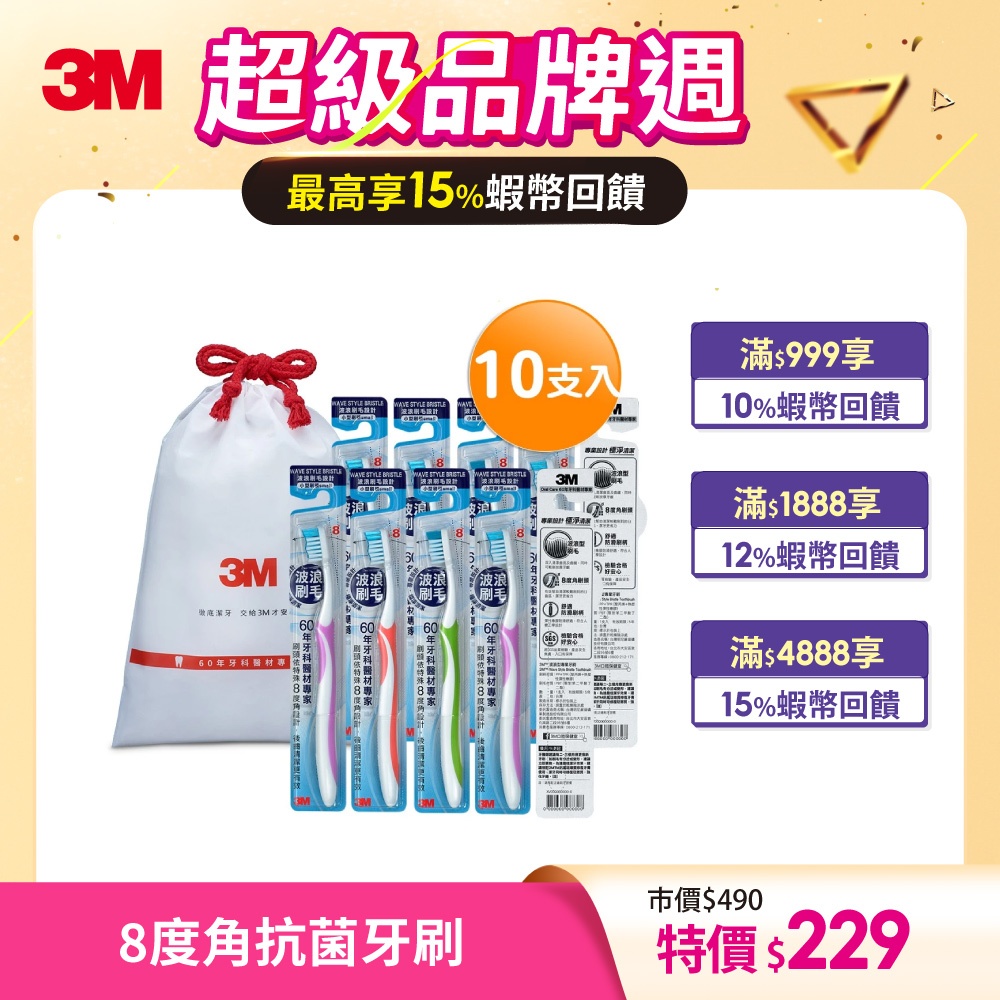 3M 8度角潔效抗菌波浪型牙刷10支包(顏色隨機)+送防水束口袋3M 8度角潔效抗菌波浪型牙刷10支包(顏色隨機)+送防水束口袋Oral Care3M 授權官方旗艦館