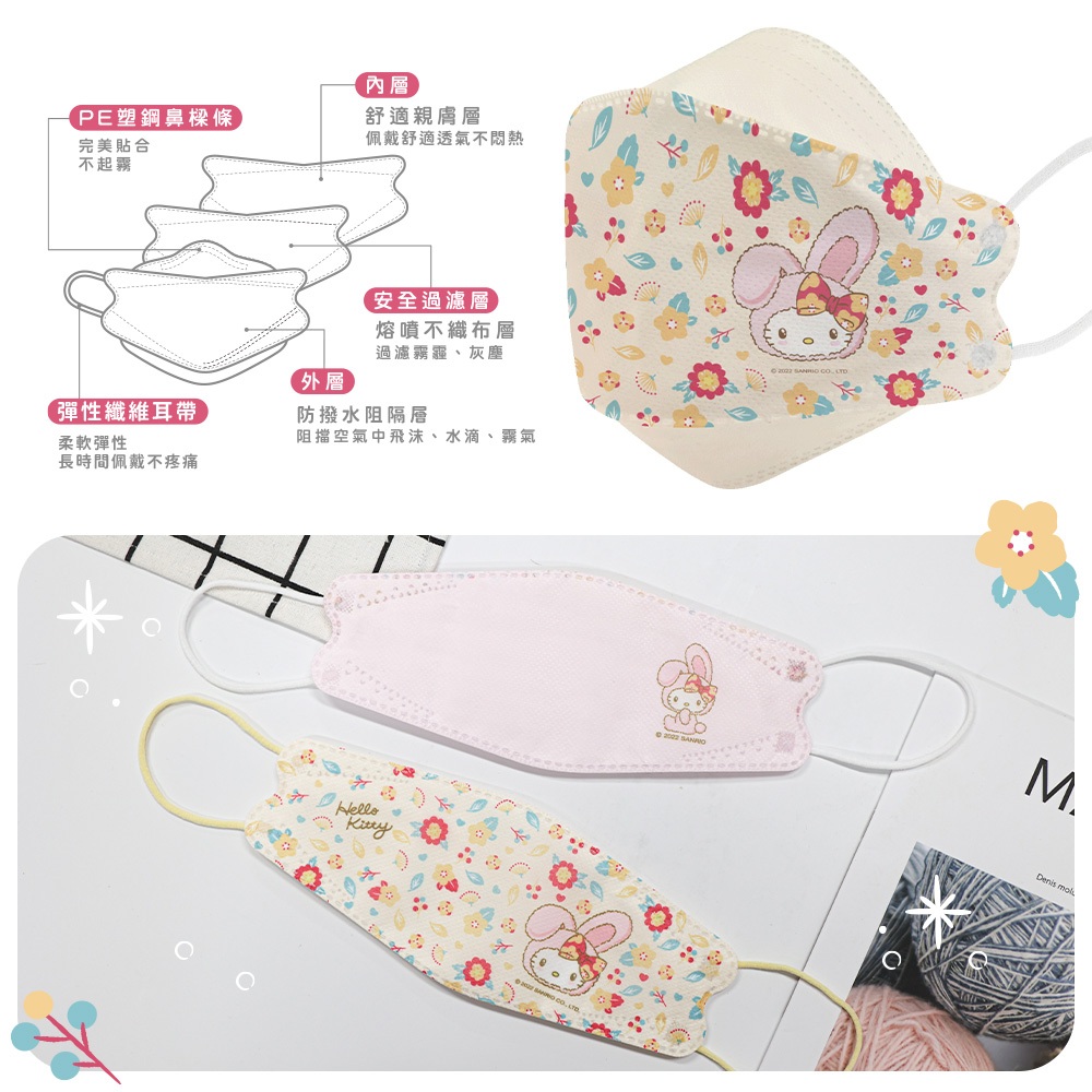 三麗鷗 HELLO KITTY KF94 3D立體醫療口罩10入/盒 | 成人醫療口罩 一般醫療口罩 MD醫療口罩粉紅花兔|春暖花兔Medical Gloves & Masks5IP8居家生活館