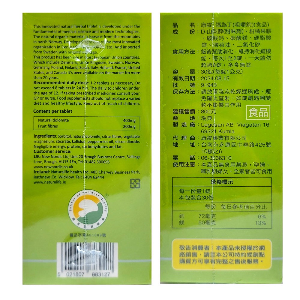 【康緹】福為丁咀嚼錠(30粒-孕婦/素食可用)~幫助維持消化道機能~