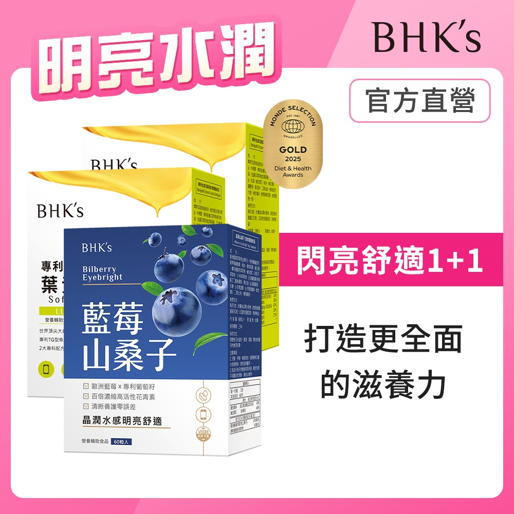 BHK’s 明亮水潤組 金盞花葉黃素(30粒/盒)2盒組+藍莓山桑子(60粒/盒) 官方旗艦店BHK’s 明亮水潤組 金盞花葉黃素(30粒/盒)2盒組+藍莓山桑子(60粒/盒) 官方旗艦店Well BeingBHK’s 官方旗艦店