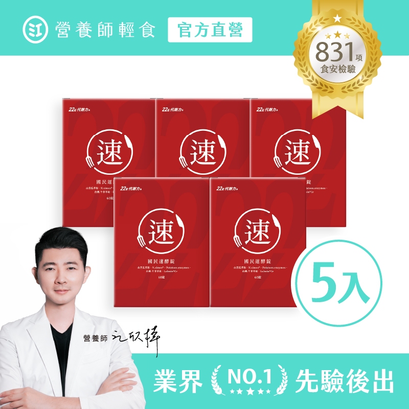 ❮營養師輕食❯國民速酵錠 五入組 (60顆/入)活性破萬!22種精準定位酵素,極致幫助消化分解,酵素1組為5入Well Being【唯一直營】營養師輕食®|2025全台唯一 榮獲國際+國內純淨雙標章