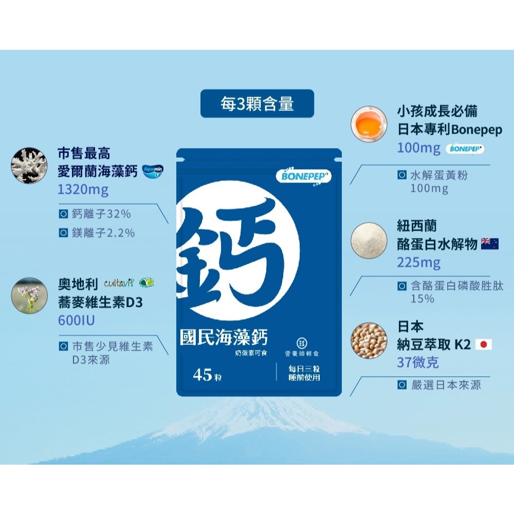 ❮營養師輕食❯國民海藻鈣 三入組(45粒/入)市售最高海藻鈣,專利Bonepep新添加,輕鬆告別缺鈣危機,海藻鈣1組為3入Well Being【唯一直營】營養師輕食®|2025全台唯一 榮獲國際+國內純淨雙標章