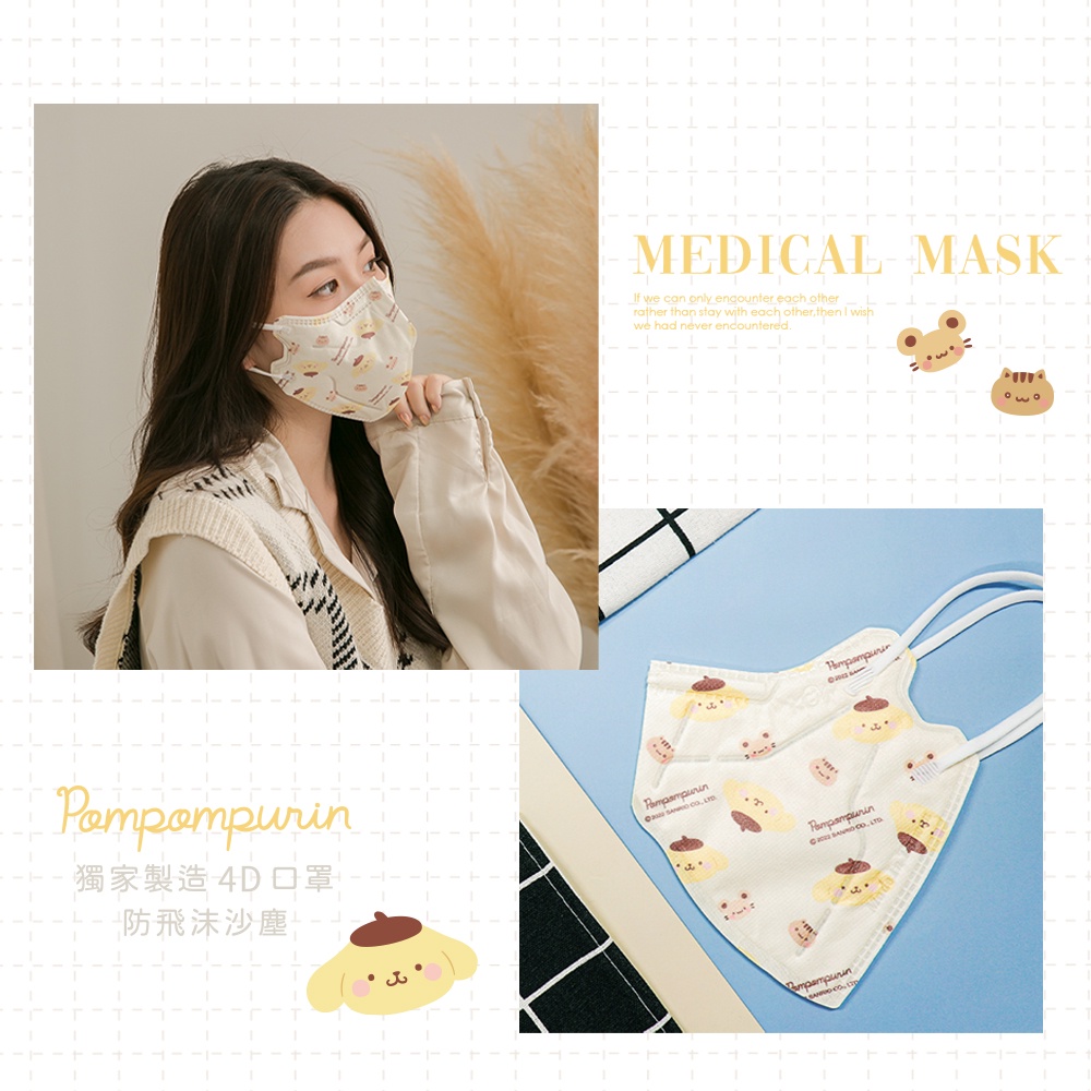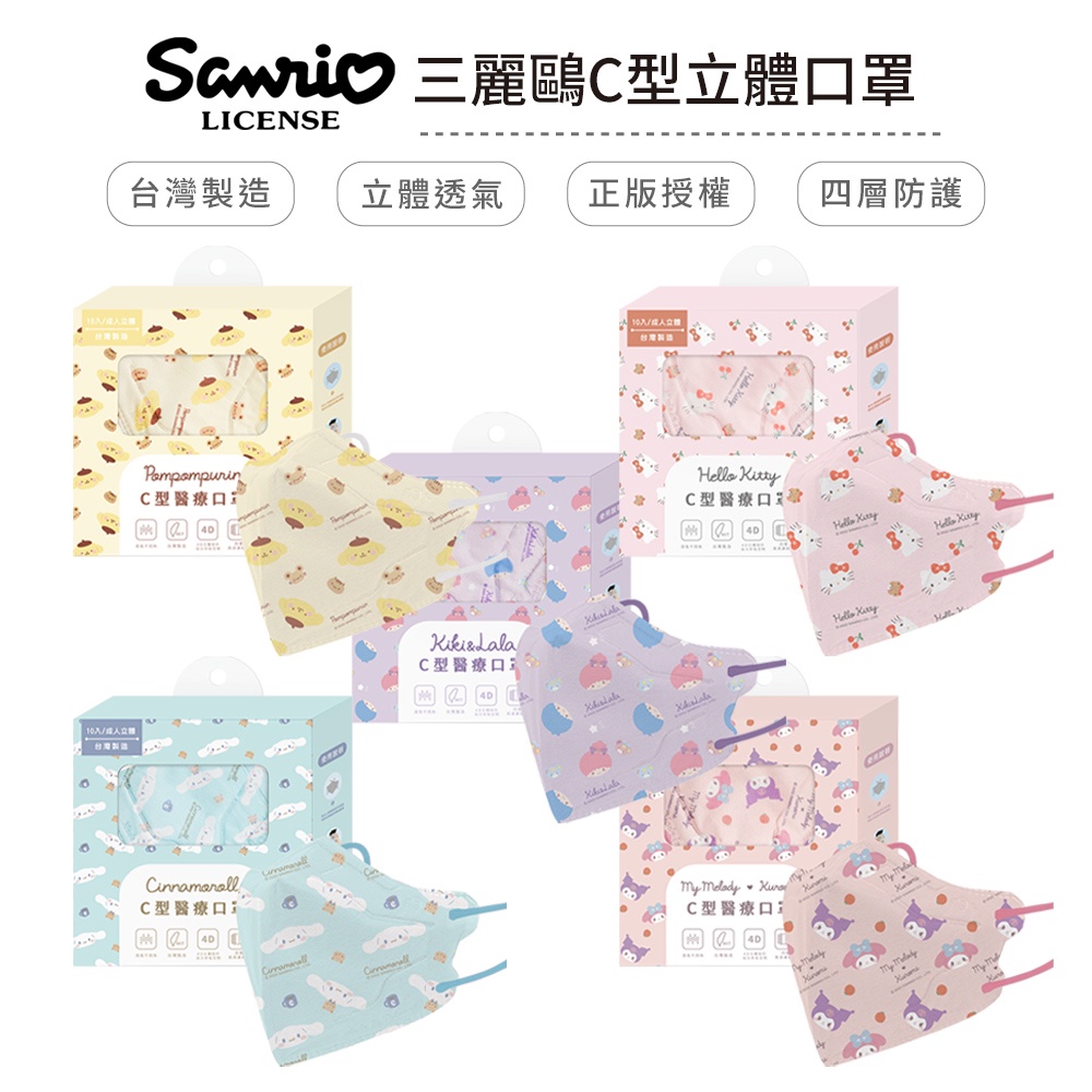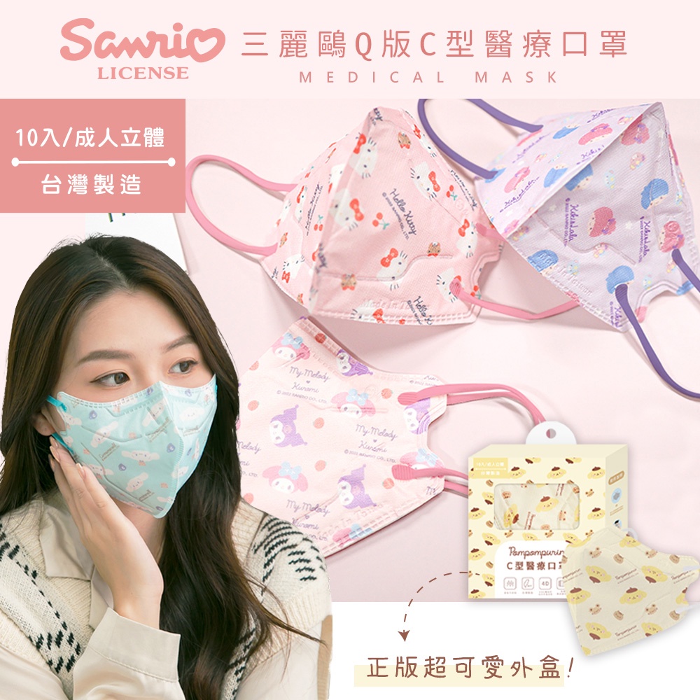 三麗鷗 Q版C型醫療口罩 成人 立體設計 台灣製造 高防護口罩 (10入/盒) 布丁狗 美樂蒂 雙子星 凱蒂【5ip8】Q版HELLO KITTY|Q版布丁狗|Q版雙子星|Q版大耳狗|Q版美樂蒂與酷洛米Medical Gloves & Masks5IP8居家生活館