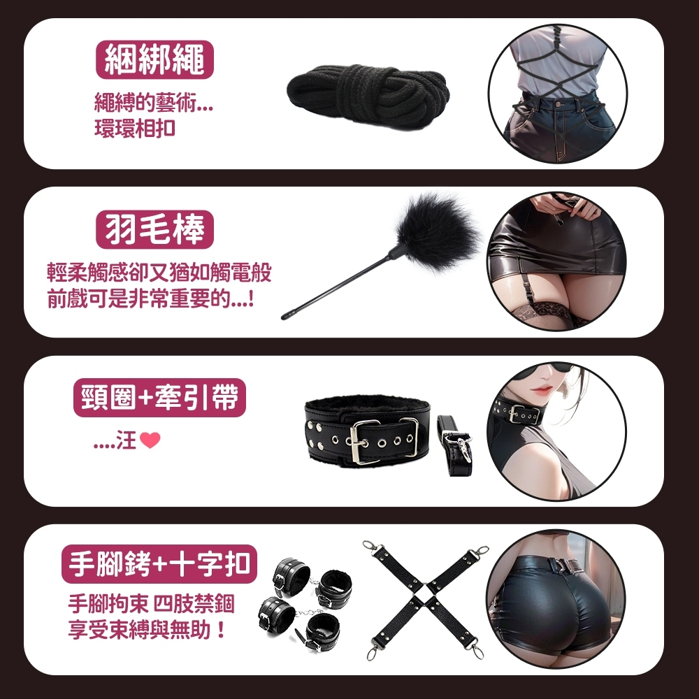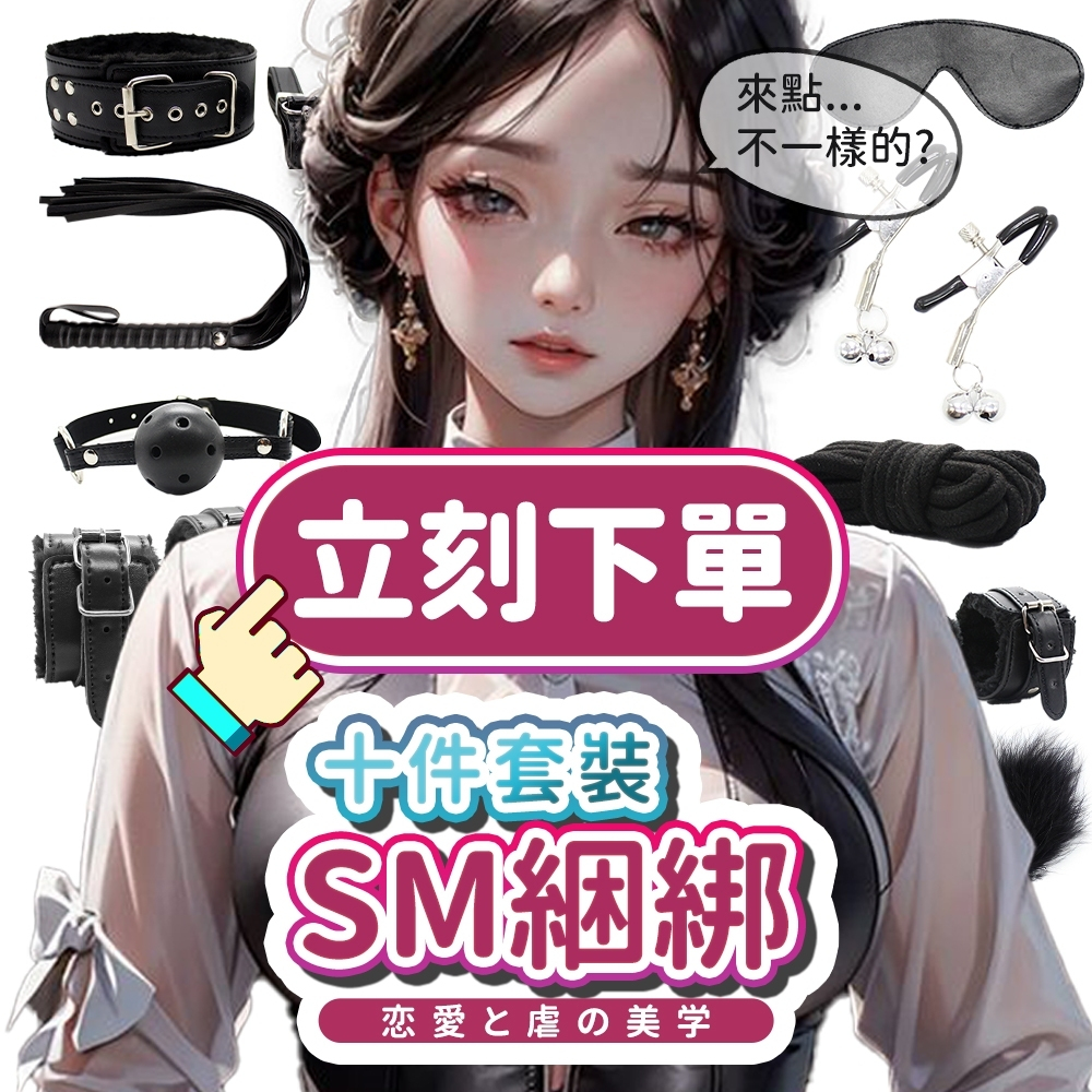 【今天買 明天到】CICILY 無禁的愛 SM綑綁十件套裝 手銬項圈 乳夾 皮鞭 綑綁束縛 BDSM 口塞球 SM調教