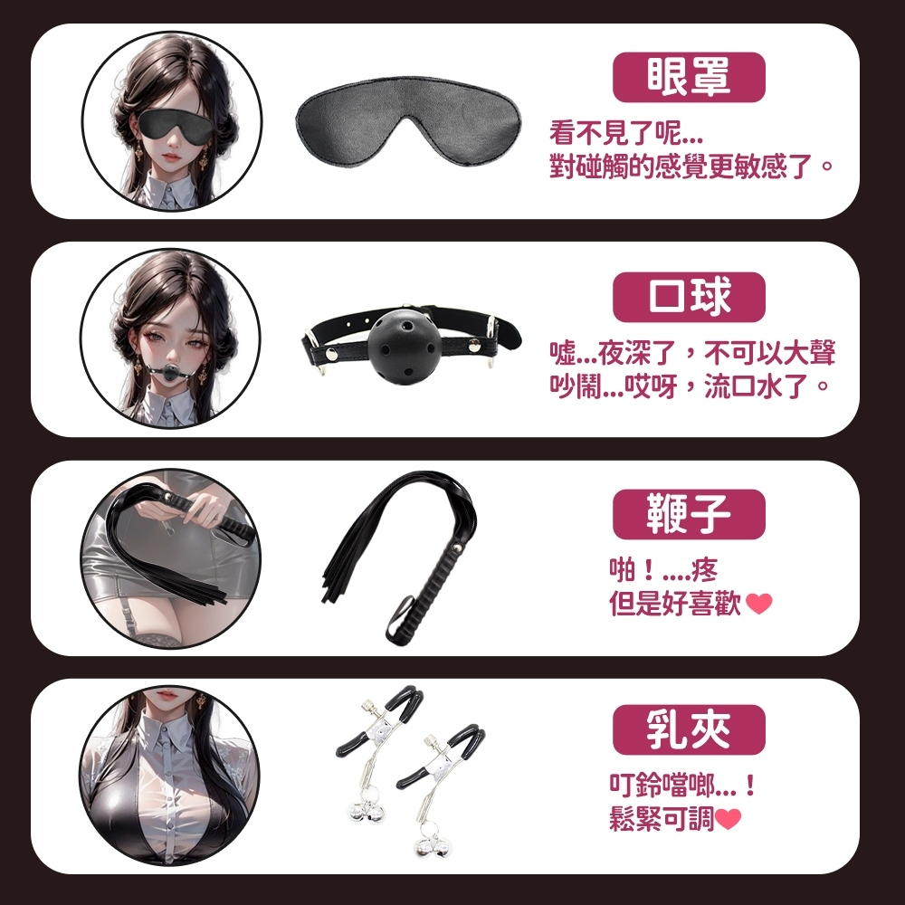 【今天買 明天到】CICILY 無禁的愛 SM綑綁十件套裝 手銬項圈 乳夾 皮鞭 綑綁束縛 BDSM 口塞球 SM調教CICILY-無禁的愛 十件組 粉色|CICILY-無禁的愛 十件組 黑色|CICILY-無禁的愛 十件組 紅色|CICILY-無禁的愛 十件組 (紫)|SM 無盡的愛 配件 乳夾(隨機)|SM 無盡的愛 口塞球 (黑)Sex Toys18 情趣用品