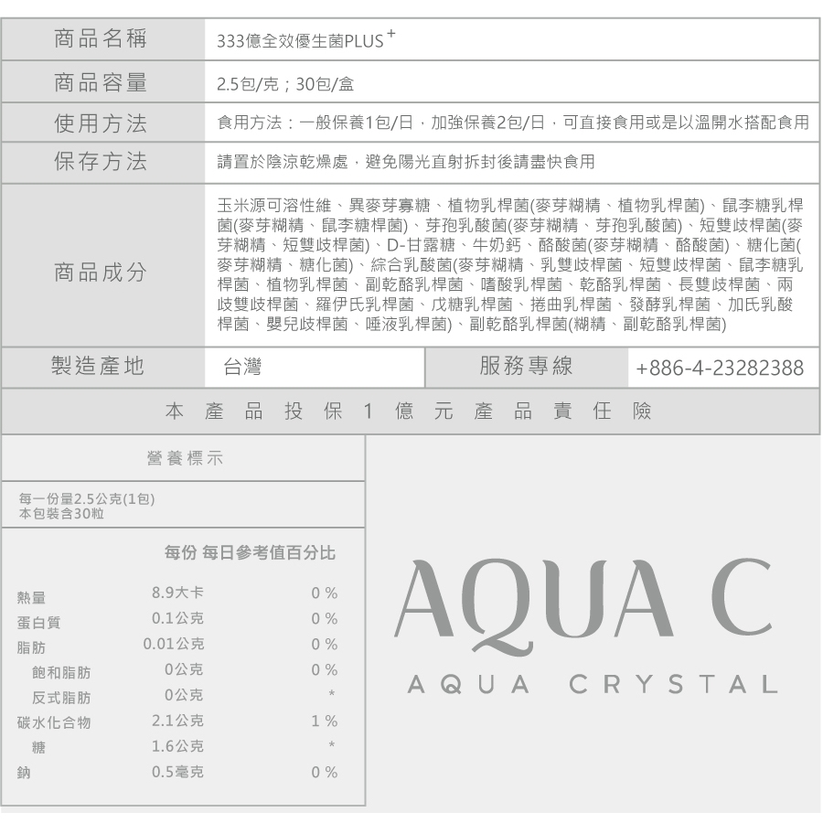 【AQUA C.花漾皙】 333億全效優生菌PLUS⁺( 30包/盒裝 )|品牌旗艦店 益生菌 奶素可食【AQUA C.花漾皙】 333億全效優生菌PLUS⁺( 30包/盒裝 )|品牌旗艦店 益生菌 奶素可食Well BeingAQUA C 花漾皙官方旗艦店