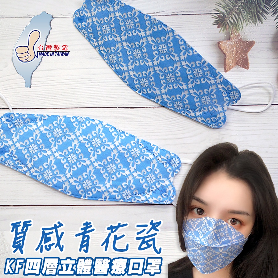 台灣奇勝 4D立體醫療口罩10入 青花瓷 花色口罩 台灣製造 立體口罩 魚嘴口罩 花紋口罩 KF94口罩 魚型口罩歡樂聖誕(10入/盒)|青花瓷(10入/盒)|花樣繽紛(10入/盒)|雪花丁香紫(10入/盒)|小紅花(10入/盒)|小藍花(10入/盒)Medical Gloves & MasksAmiss全家人的襪子