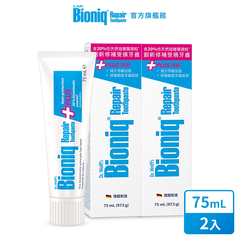 【Bioniq 貝歐尼】修復+護齦牙膏 75ml (二入組)二入組(無贈品)|二入組_送旅行用軟毛牙刷x2(限量)|限時特賣限定-二入組無贈品Oral CareAlpecin/Plantur/Bioniq貝歐尼-Dr. Wolff官方商城