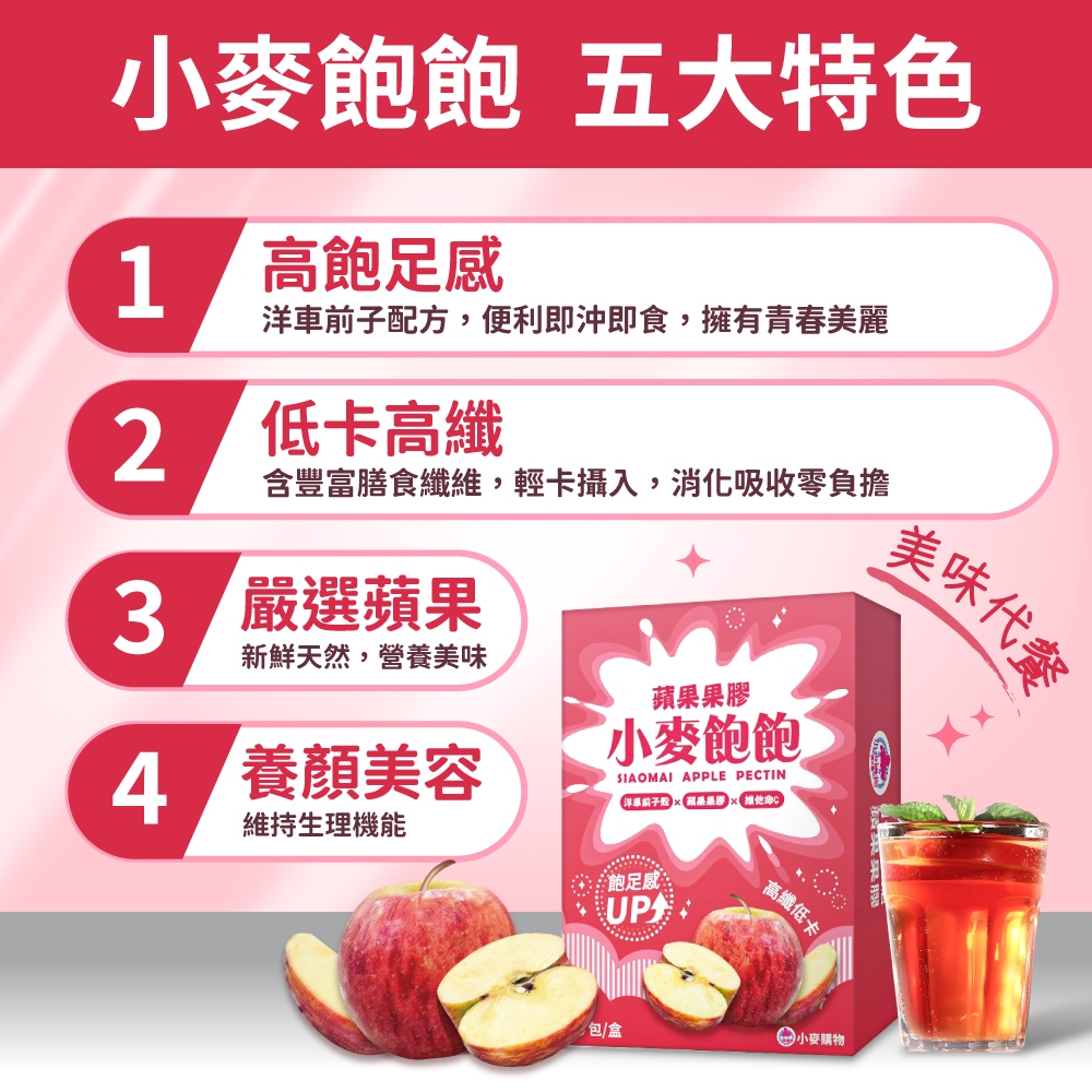 小麥飽飽 蘋果果膠 高纖美味代餐 代餐 低卡高纖 神經醯胺 膳食纖維 助排便【小麥購物】【A114】FWeight Management 小麥購物