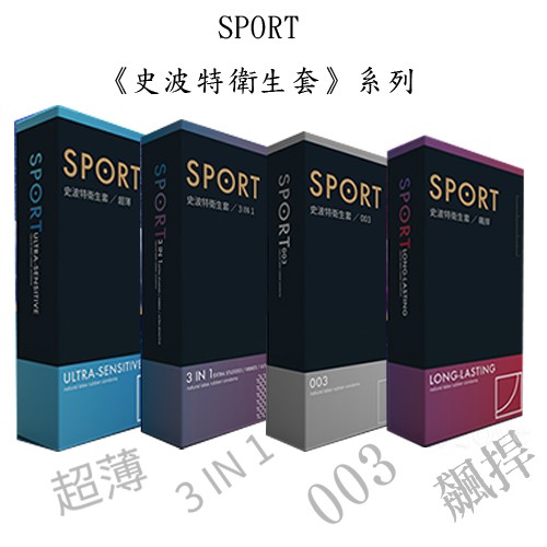 享樂網|五款 SPORT 史波特 ‧ 衛生套 保險套 一盒/12入 超薄 3合一 003 飆捍 激感飆捍型 (持久功能型)|003 (蟬翼貼身、猶如無套)|3合1 (超薄, 螺紋, 顆粒型)|超薄|激感衛生套保險套﹝12入/盒﹞Condoms「享樂網❤情趣用品|台灣現貨速發🚀」