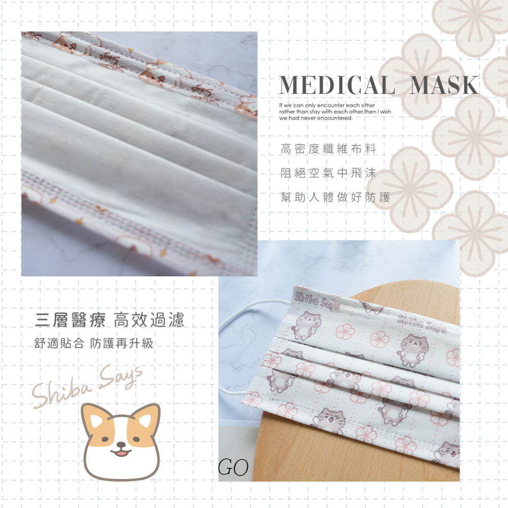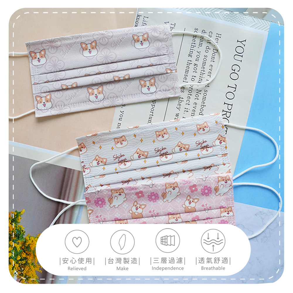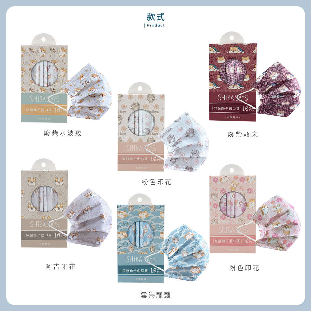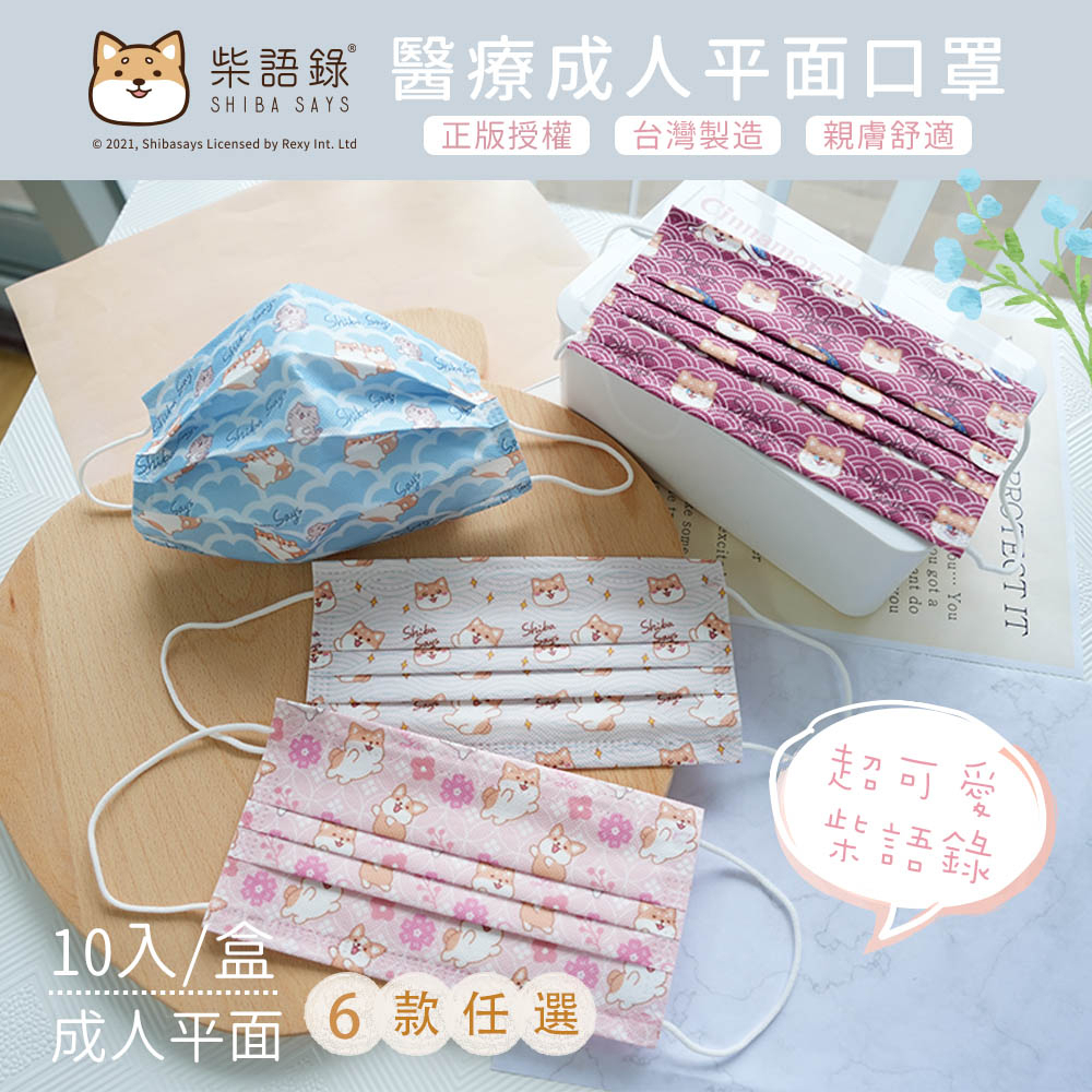 柴語錄 Shiba Says 花布系列 醫療口罩 醫用口罩 台灣製造 成人口罩 (10入/盒)【5ip8】IN0007粉色印花|太子印花|廢柴水波紋|阿吉印花|雲海飄飄|廢柴賴床Medical Gloves & Masks5IP8居家生活館