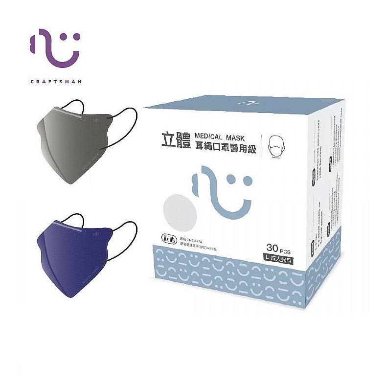 匠心 立體耳繩醫用口罩(成人L)30入(雙色款)藍&灰-限定款(雙色款) 爆漿藍莓x鐵灰Medical Gloves & Masks923就愛傘 官方直營店