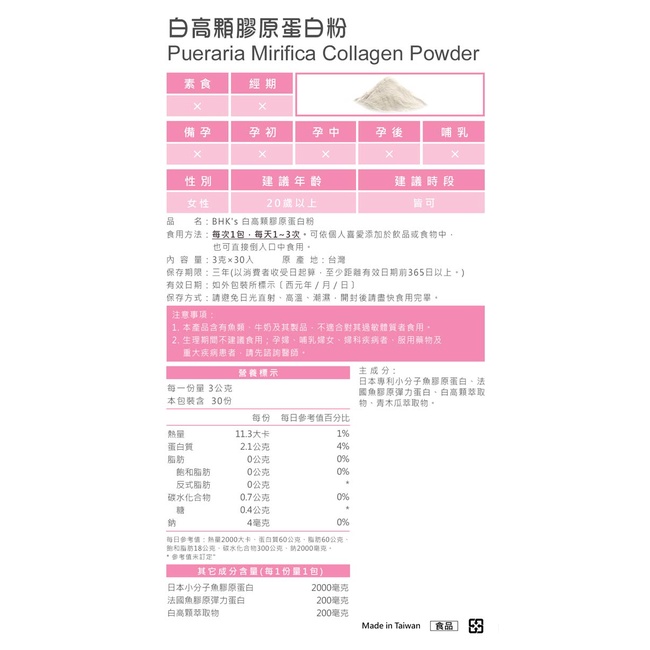 BHK’s 白高顆膠原蛋白粉 (3g/包;30包/盒) 官方旗艦店1盒|3盒|6盒Beauty SupplementsBHK’s 官方旗艦店