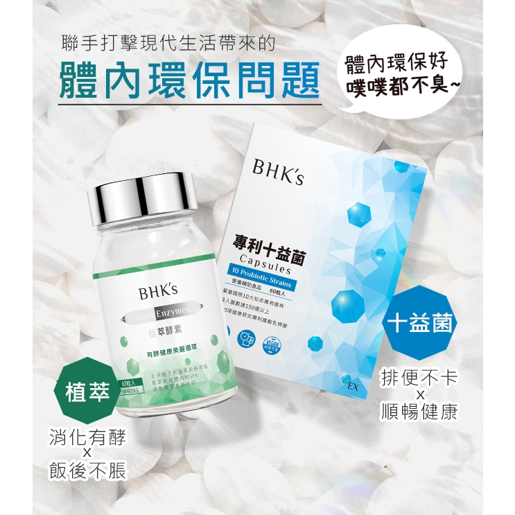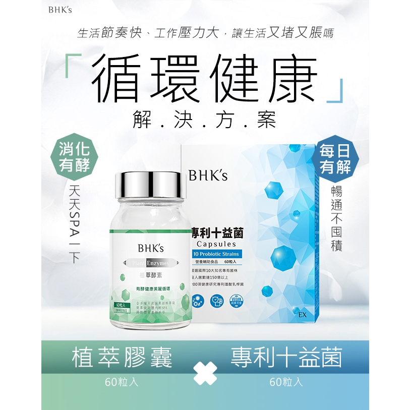 BHK’s 消化順暢組 植萃酵素(60粒/瓶)+專利十益菌EX(60粒/盒) 官方旗艦店