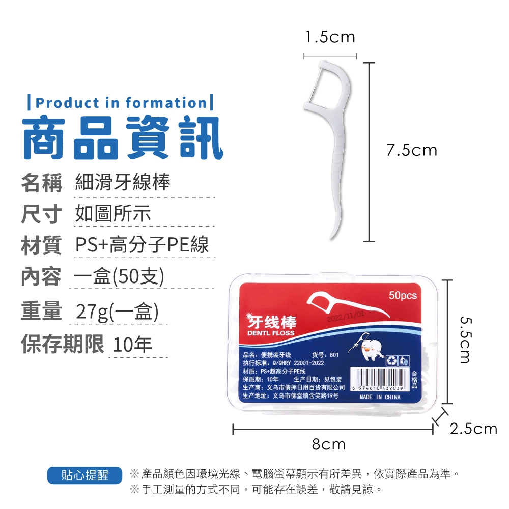 細滑牙線棒 50支入 牙線棒 牙籤 細滑牙籤棒 剃牙 清潔牙線 超韌細滑 牙線【小麥購物】【S337】一盒Oral Care 小麥購物