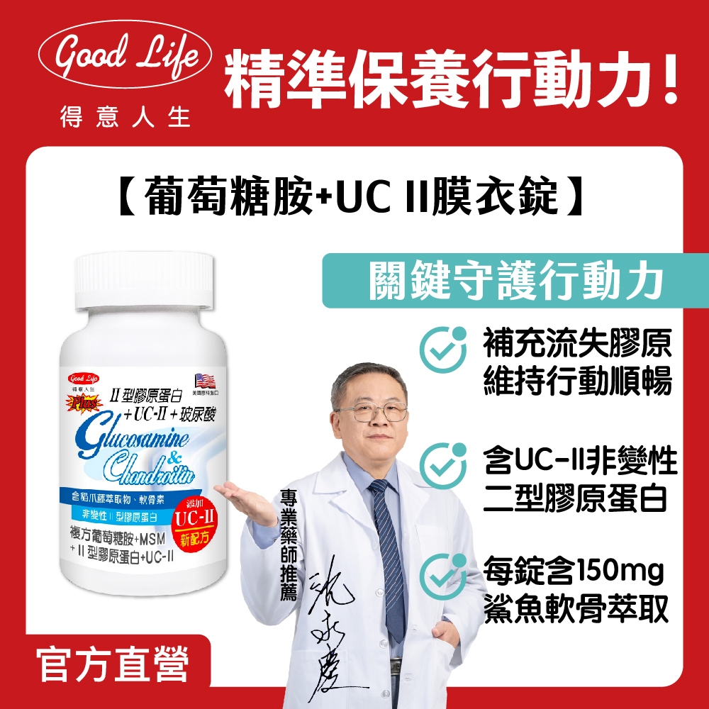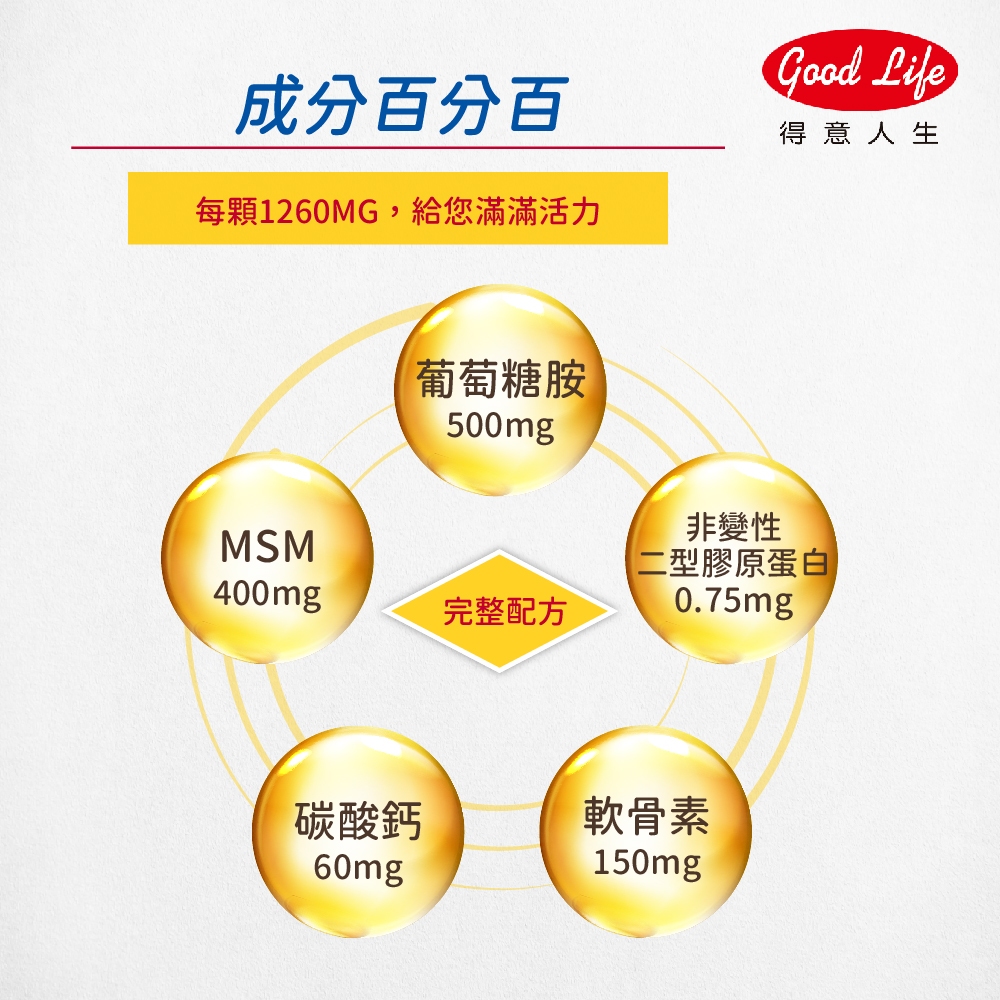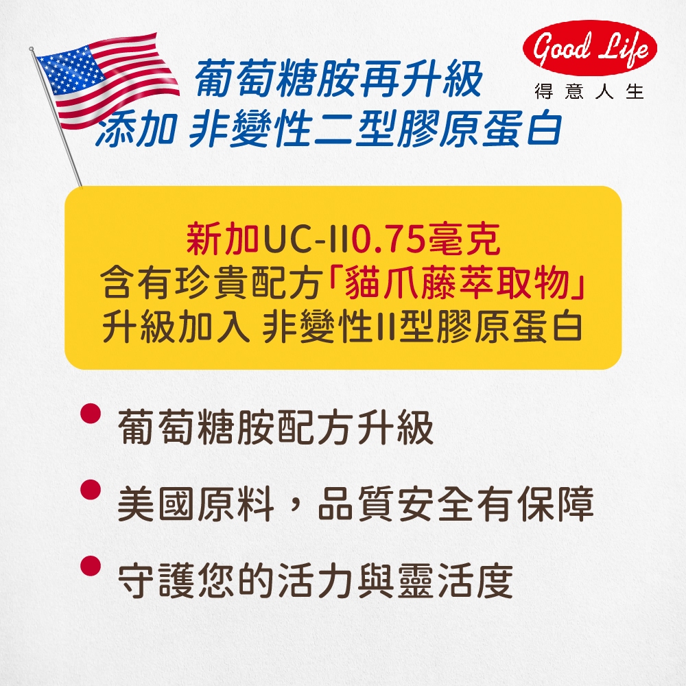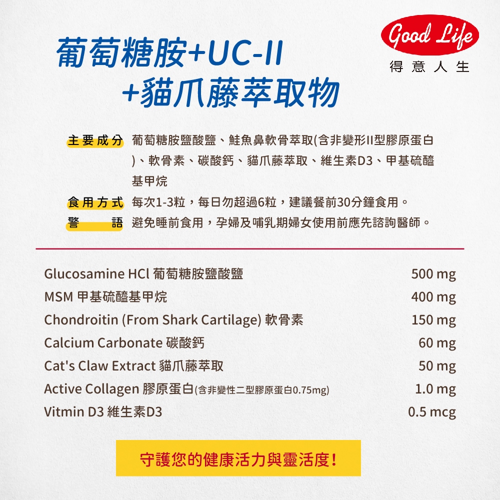 【得意人生】新葡萄糖胺+UC II 非變性二型膠原蛋白膜衣錠 (100粒) MSM/貓爪藤/軟骨素【得意人生】新葡萄糖胺+UC II 非變性二型膠原蛋白膜衣錠 (100粒) MSM/貓爪藤/軟骨素Well Being《Goodlife得意人生》