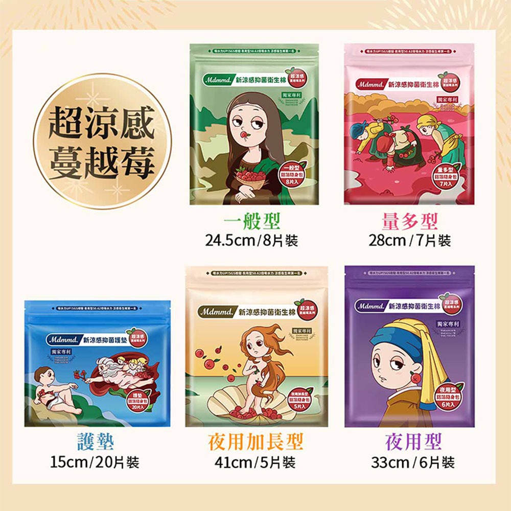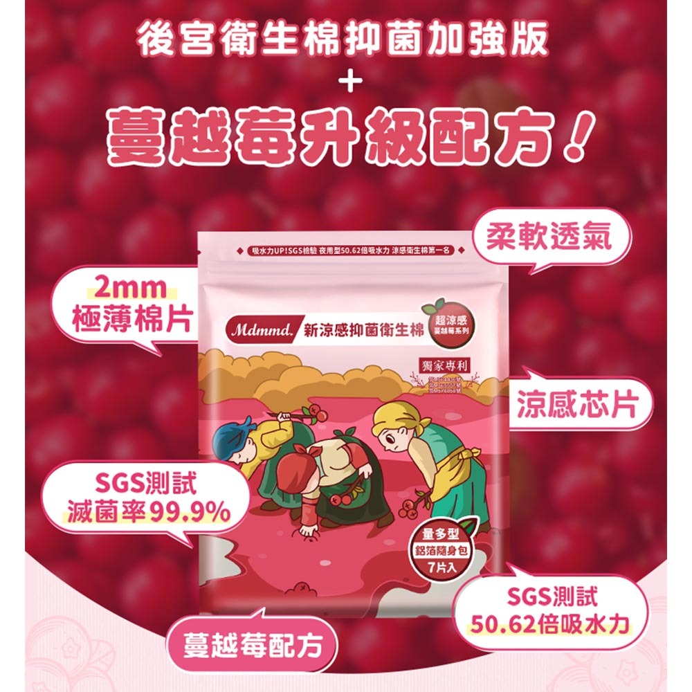 Mdmmd.蔓越莓涼感系列衛生棉 涼感系列衛生棉.一般型 24.5cm(蔓越莓)|量多型 28cm(蔓越莓)|夜用型 33cm(蔓越莓)|夜用加長型 41cm(蔓越莓)|護墊 15cm(蔓越莓)Feminine Care923就愛傘 官方直營店