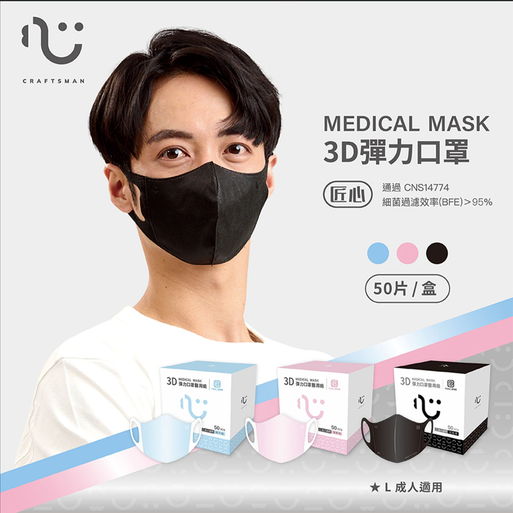 【匠心-3D彈力醫用口罩-L尺寸】黑色 (適合一般成人) 每盒50入【匠心-3D彈力醫用口罩-L尺寸】黑色 (適合一般成人) 每盒50入Medical Gloves & Masks923就愛傘 官方直營店