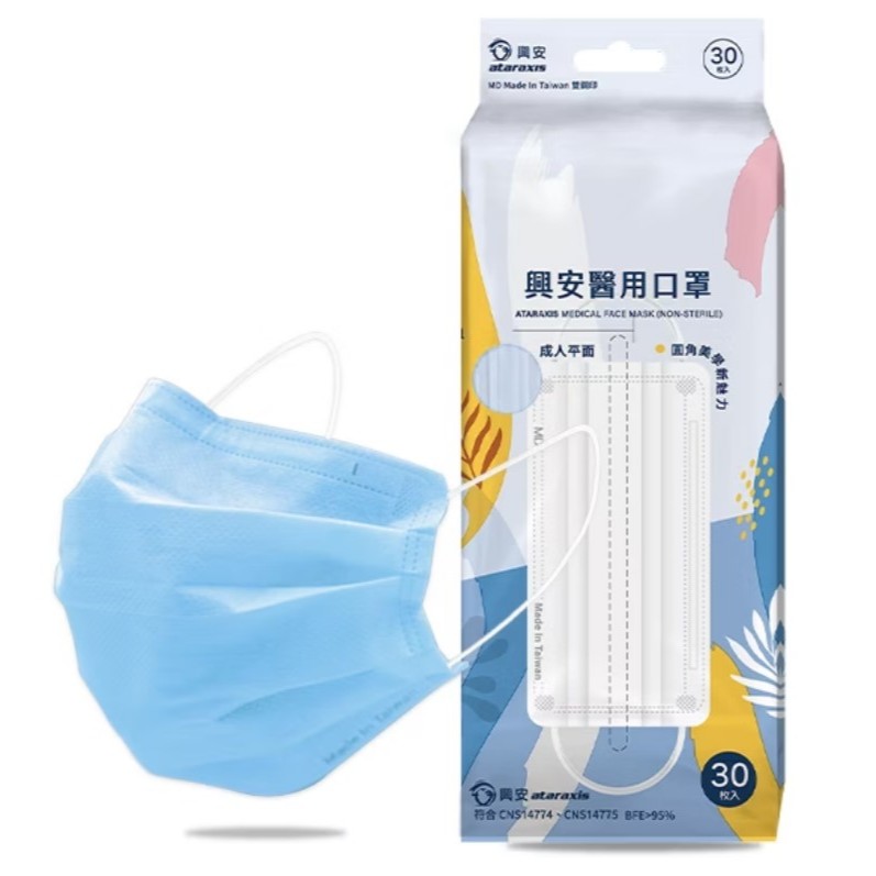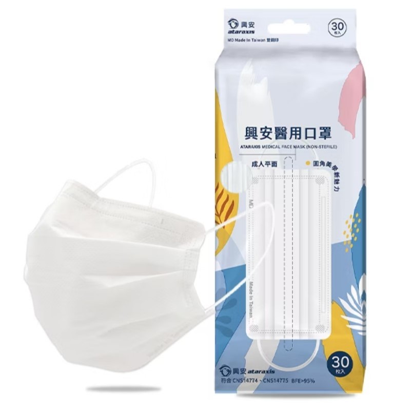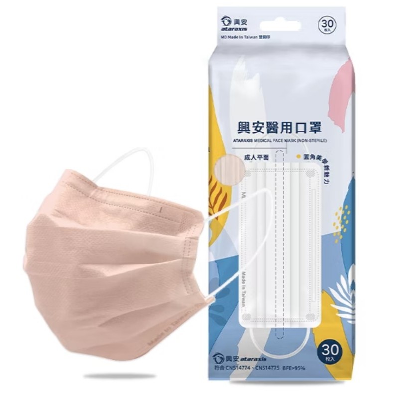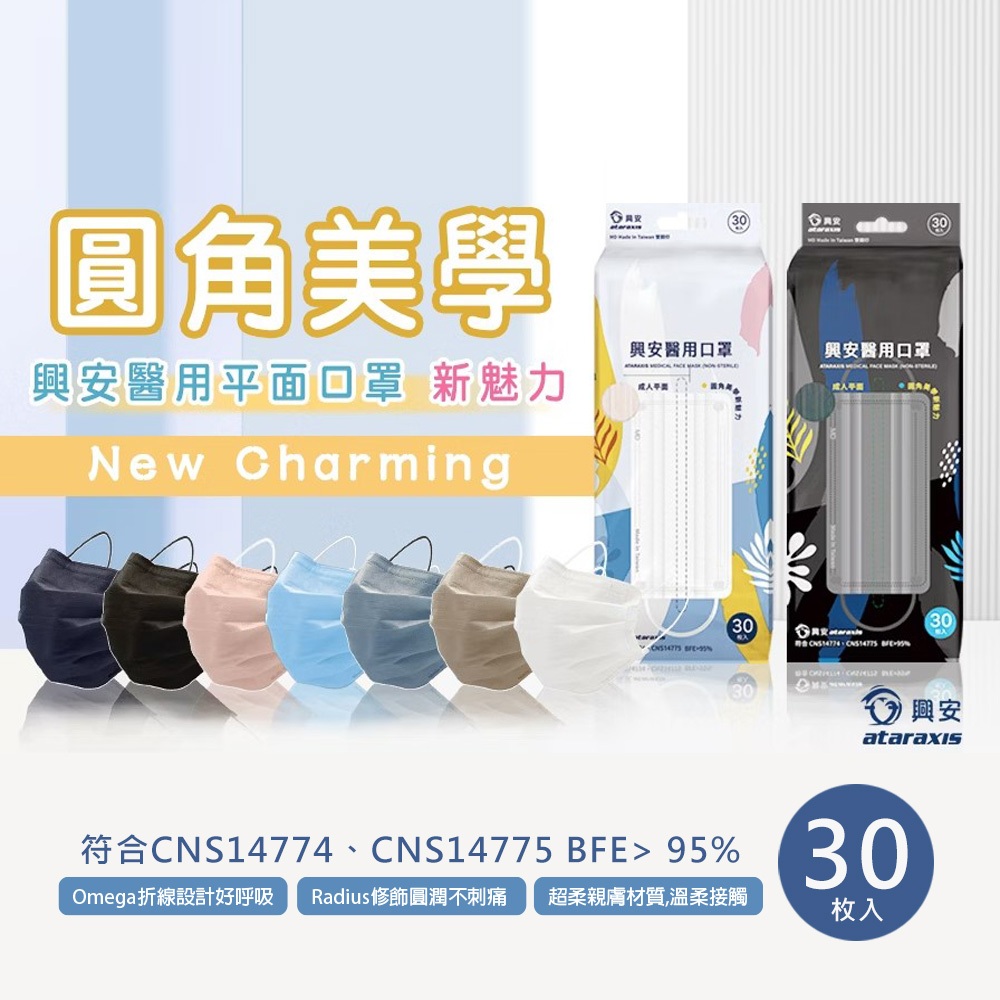 【興安】成人平面醫用口罩-30入/包 圓角美學設計