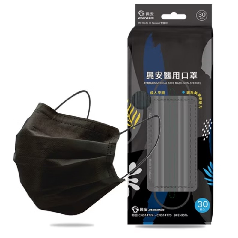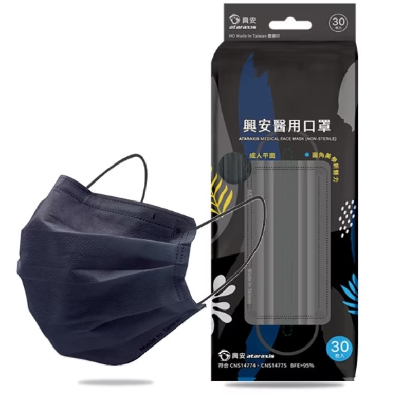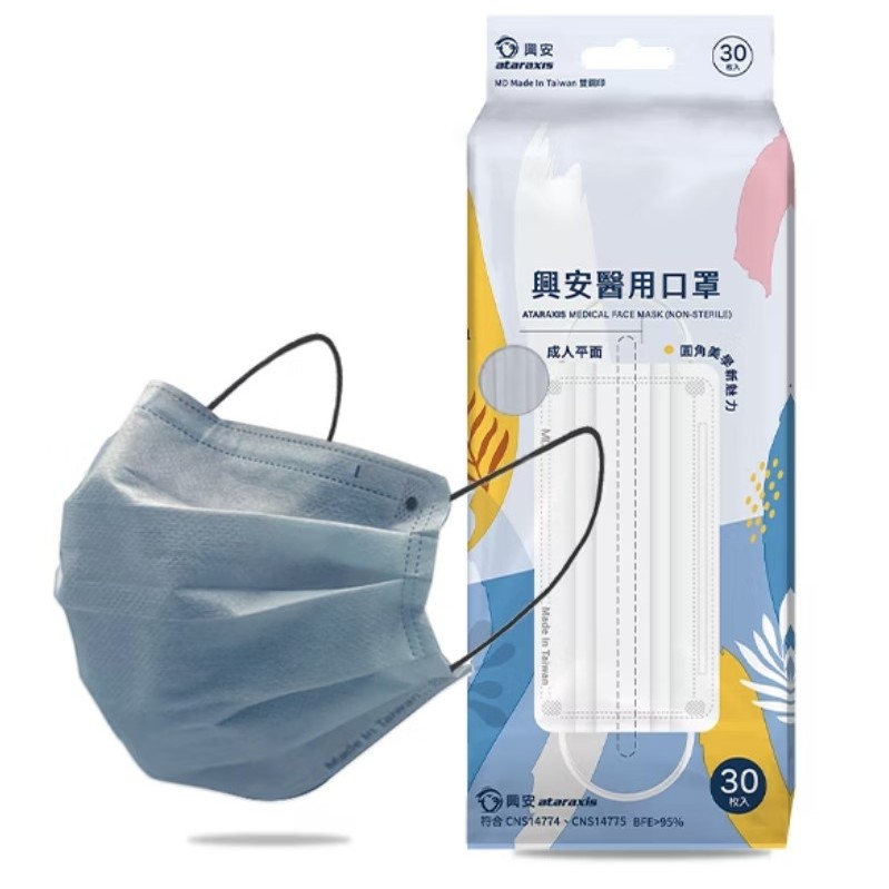 【興安】成人平面醫用口罩-30入/包 圓角美學設計午夜藍|藍色|黑色|蜜桃白|白色|燕麥奶|青燕灰Medical Gloves & Masks923就愛傘 官方直營店
