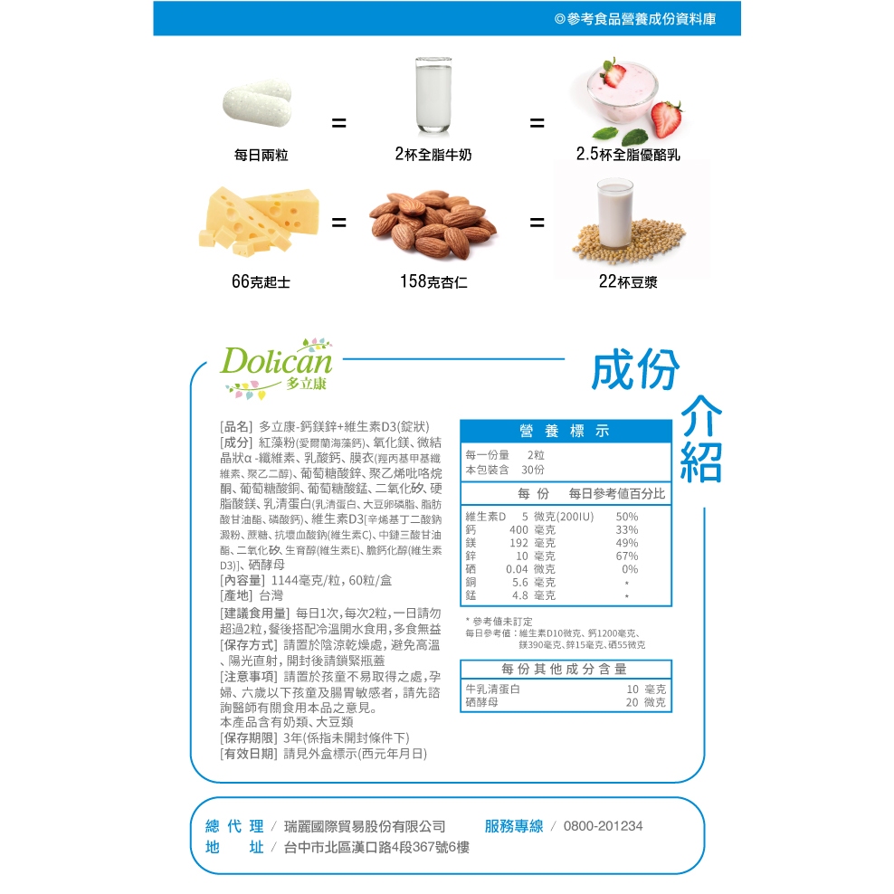 【多立康】鈣鎂鋅+維生素D3錠60粒(愛爾蘭海藻鈣/乳酸鈣/鋅/鎂/鈣/維生素D/微量元素/硒酵母/乳清蛋白)多立康 鈣鎂鋅+維生素D3(60粒/瓶)Well BeingB&H 多立康保健食品、日本John’s Blend香氛、日用雜貨專賣店