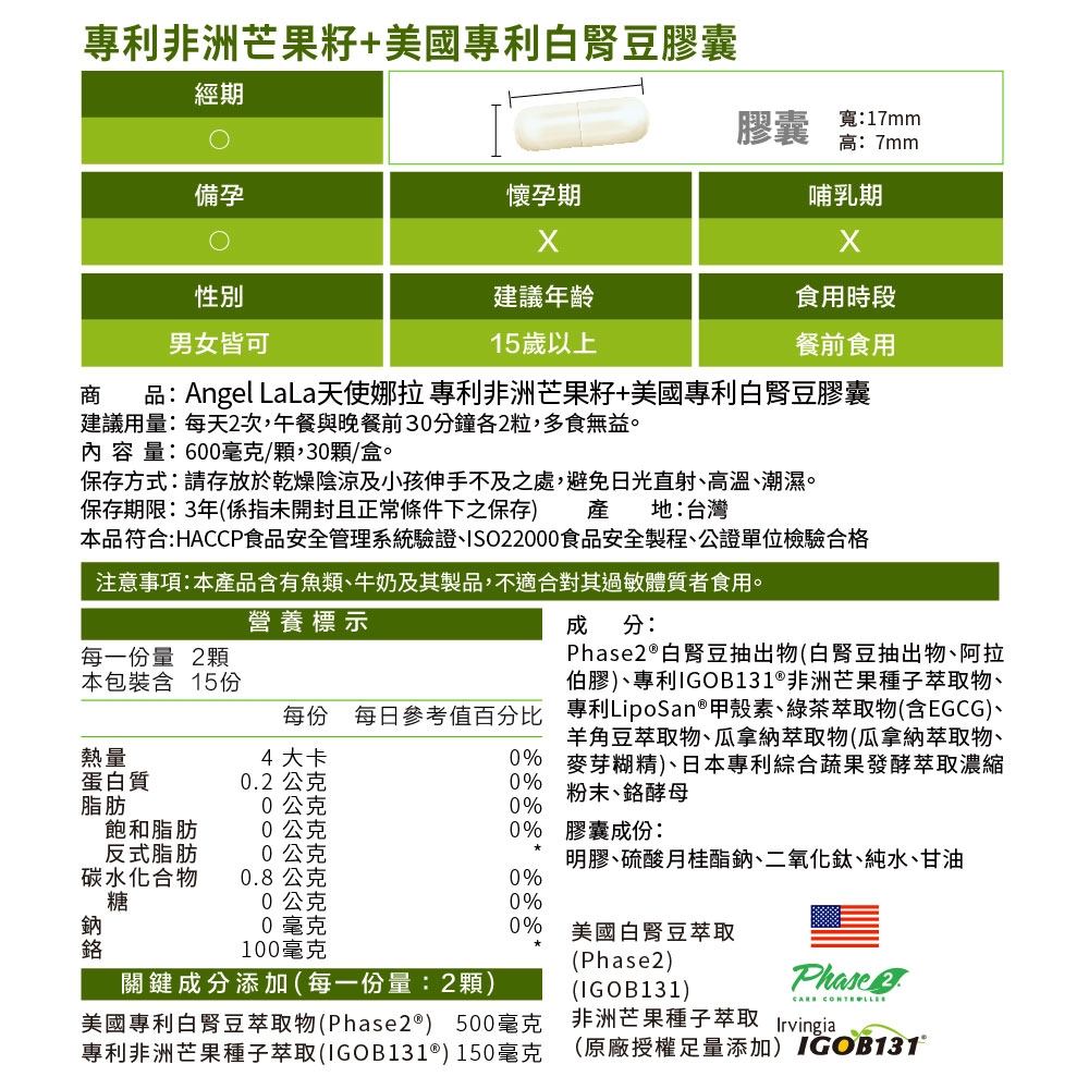 【Angel LaLa天使娜拉】專利非洲芒果籽+美國專利白腎豆膠囊(30顆/盒) 賴雅妍代言 緩解澱粉吸收 澱粉剋星1盒|3盒|5盒Weight Management【官方旗艦店】Angel LaLa 天使娜拉 你的美麗生活
