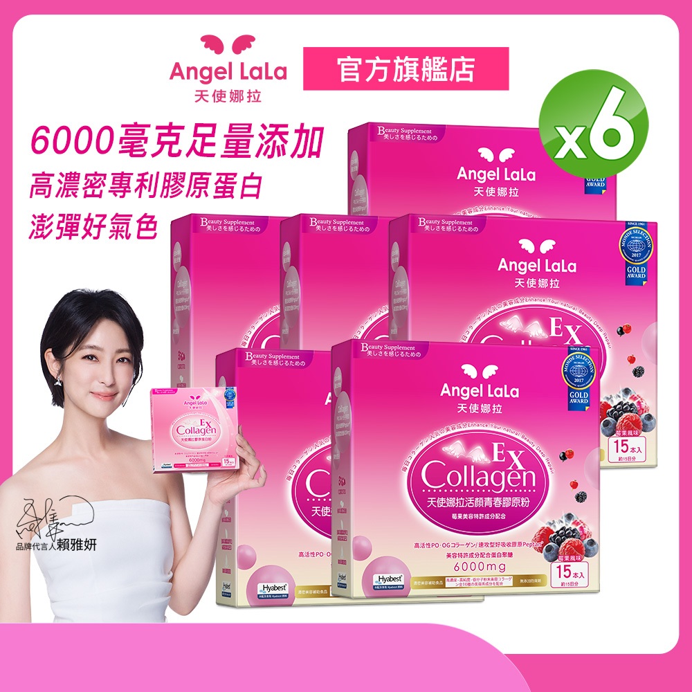 【Angel LaLa天使娜拉】EX活顏膠原蛋白胜肽粉 (莓果/15包/盒)x6盒 賴雅妍 蛋白聚醣 玻尿酸6盒Beauty Supplements【官方旗艦店】Angel LaLa 天使娜拉 你的美麗生活