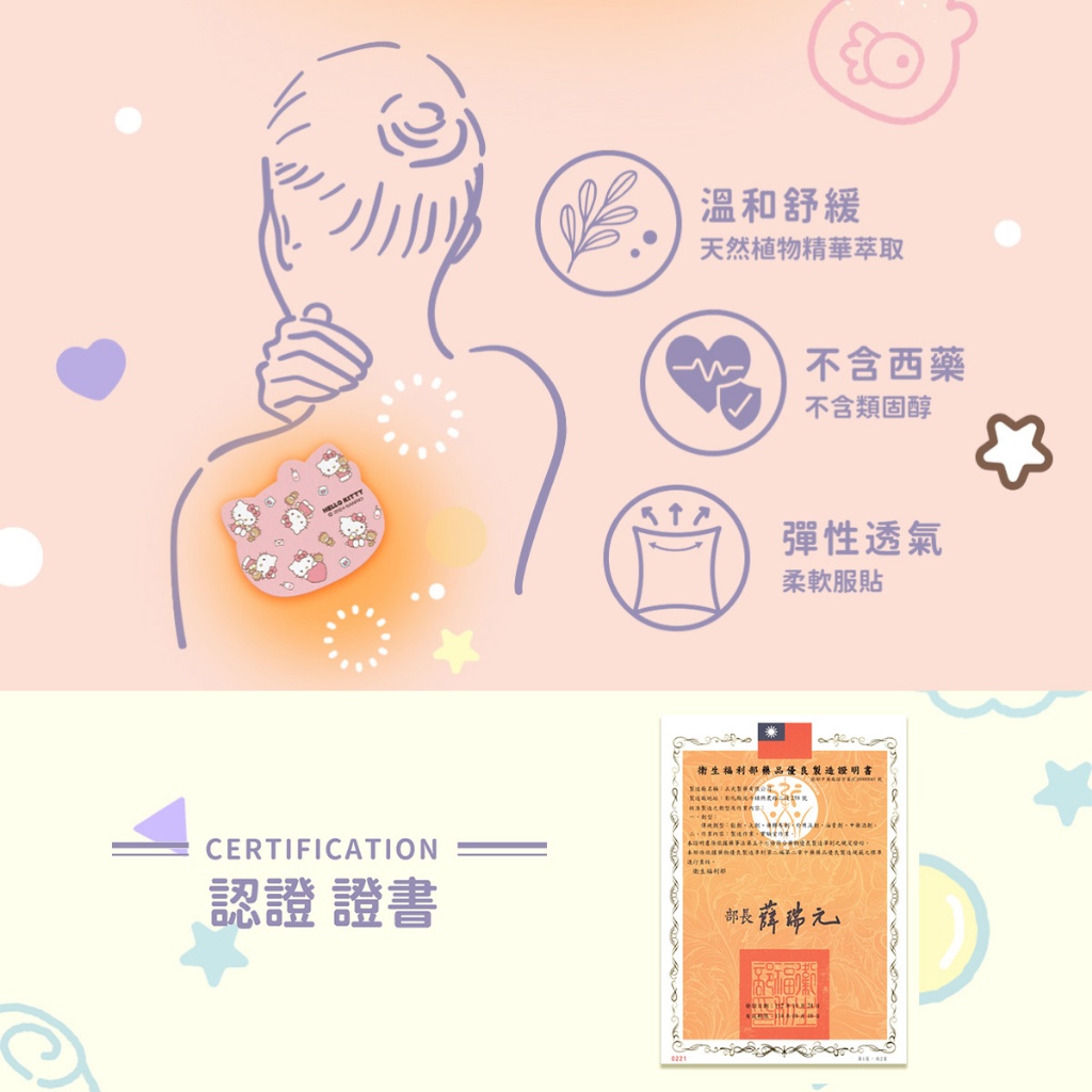 幸福物語 三麗鷗 舒緩呼呼貼布 6片/盒 Hello Kitty 酷洛米 大耳狗 漢頓【BenQ 明基 健康生活】溫感|Hello Kitty(玫瑰),4盒|溫感|酷洛米(薰衣草),1盒|涼感|人魚漢頓(佛手柑),1盒|涼感|大耳狗(檸檬草),1盒|涼感|大耳狗(檸檬草),4盒|溫感|Hello Kitty(玫瑰),1盒|溫感|酷洛米(薰衣草),4盒|涼感|人魚漢頓(佛手柑),4盒Pain RelieversBenQ 明基 健康生活官方直營店