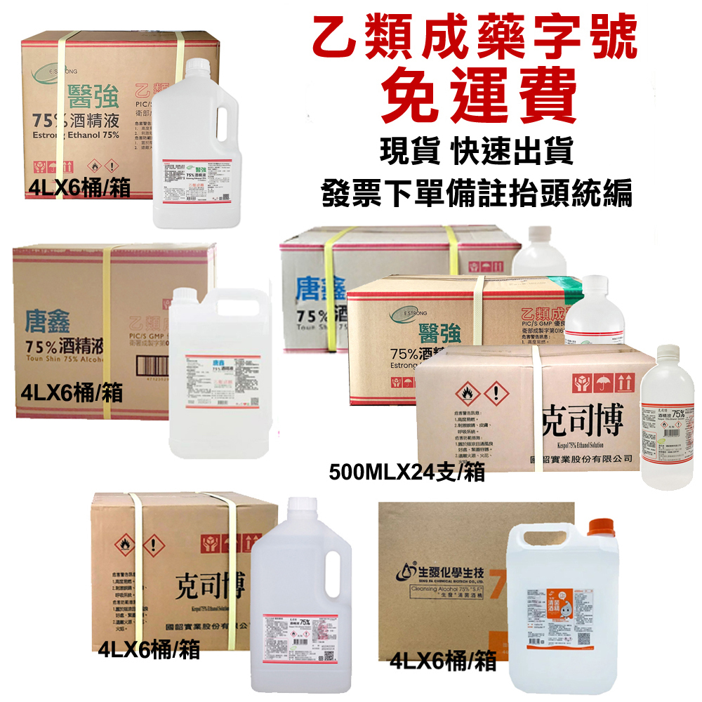 (現貨免運-整箱)醫強/唐鑫/克司博/生發/新安堂 75%潔用酒精組(500mlX24入/箱 或 4LX6入/箱)