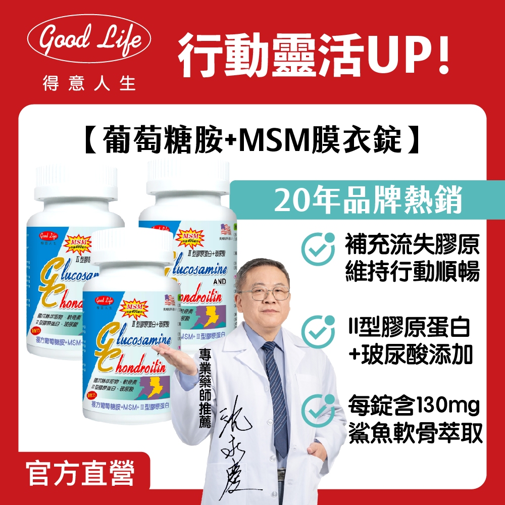 【得意人生】新葡萄糖胺+MSM膜衣錠(含II型膠原蛋白,玻尿酸)(60錠/罐) 貓瓜藤/軟骨素三入|六入Well Being《Goodlife得意人生》