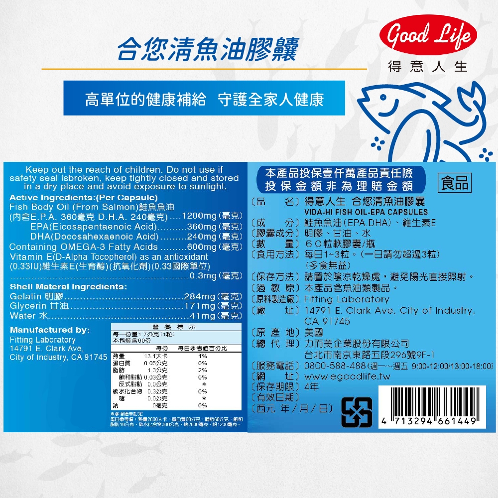 【得意人生】合您清魚油膠囊 (60粒) 高單位魚油/DHA/EPA/維生素E【得意人生】合您清魚油膠囊 (60粒) 高單位魚油/DHA/EPA/維生素EWell Being《Goodlife得意人生》