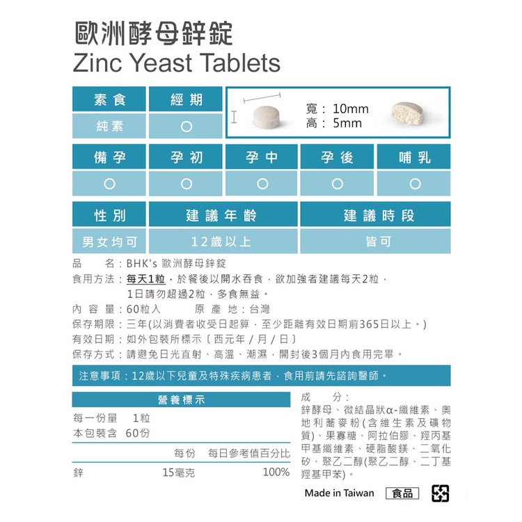 BHK’s 歐洲酵母鋅錠 (60粒/盒)3盒組 官方旗艦店BHK’s 歐洲酵母鋅錠 (60粒/盒)3盒組 官方旗艦店Well BeingBHK’s 官方旗艦店